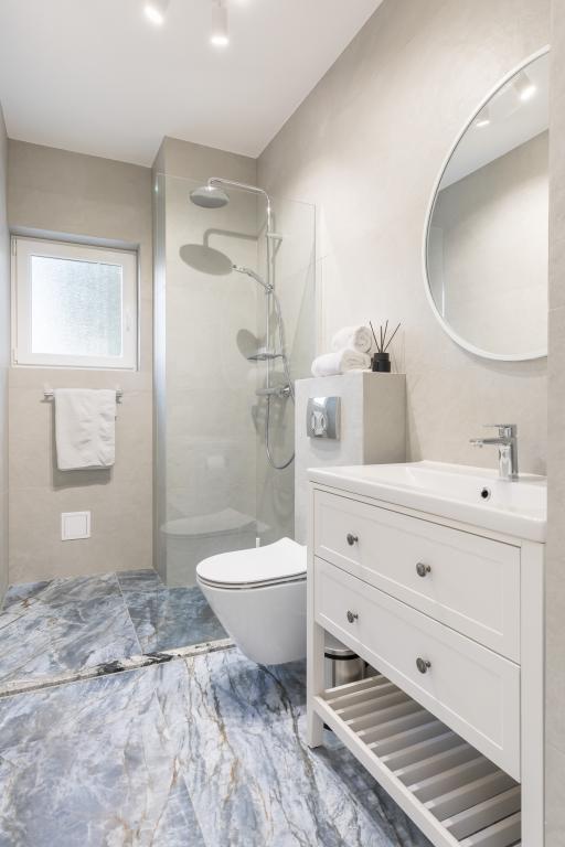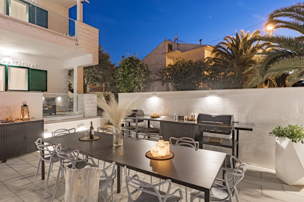 We booked 3 apartments in this beautiful house with a garden in August. Marina is a very kind and understanding hostess and willingly accepted our request to arrive earlier if possible. The guests left one of the apartments early, so it was cleaned immediately and we were able to occupy it in the morning, which we were very happy about, especially because of the children! Marina is always available and helpful! He provided us with parking for 4 cars in the house. It was a wonderful week vacation with my big family with friends and 4 little kids. All three apartments with a homely furnished terrace for families were comfortable and clean! We usually ate dinner together on the huge terrace of the above apartment, where we could all fit, while enjoying the wonderful view of the sea. One evening in the garden, in the shade of a beautiful large palm tree, we could have a barbecue in a very cozy Mediterranean environment, which was equipped with a huge table (where we could all sit) and a sink, so it was easy to clean up. In the garden there was a swing, a little jumper, a scooter and other toys, so the children could play in the meantime. The beach, which is a 2-minute walk from the house, is beautiful, clean and not crowded! A small harbor is a short walk from the apartment, from where you can take a small boat to the old town of Trogir. Everyone really enjoyed their vacation in the Marina apartment, the only problem was that one week was too short, we would have liked to stay longer! By chance, a sleeping toy was left there, which is important for a small child, but Marina offered it and sent it to us by post. We wholeheartedly recommend the apartment to everyone! Thank you very much Marina! <3