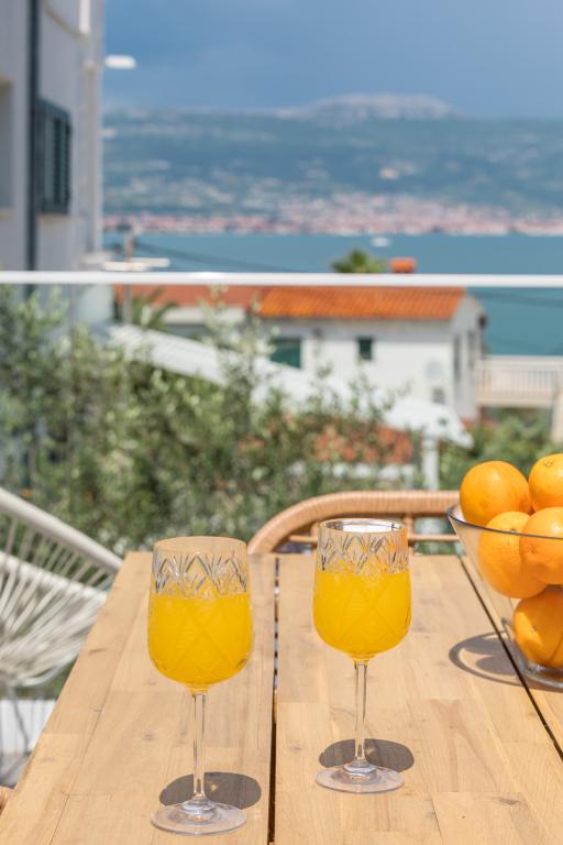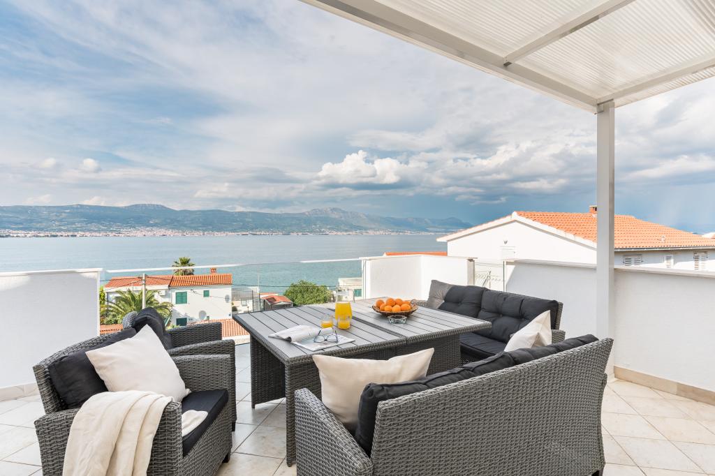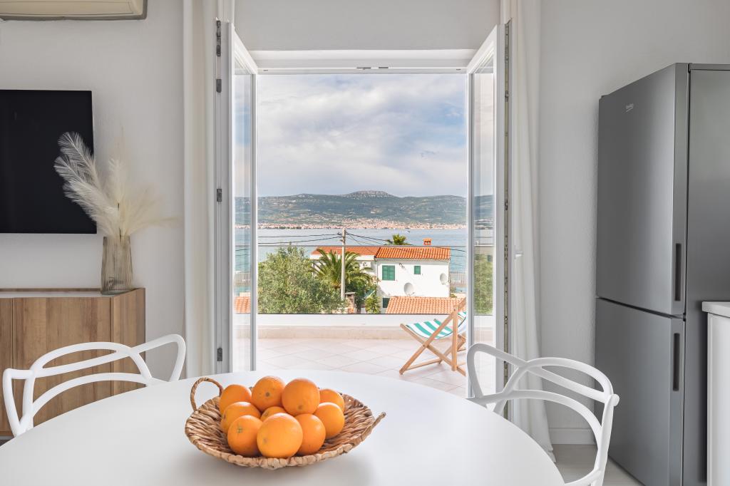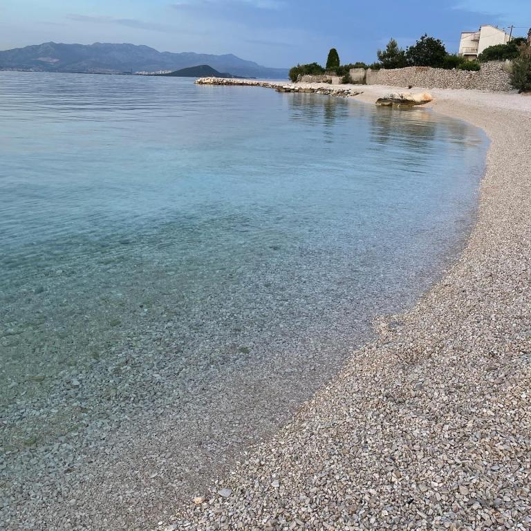 Nice apartment and clean. We stayed here for a week in the middle of October as a family of 5 with young children and it is highly recommended because of the nice and quiet location right on the beach. We rented a car at the airport and you will need it for day trips to various cities such as Trogir, Split, Omis and the waterfalls at Krka. These can all be reached within a reasonable distance by car. The beach has a nice bar just a few minutes' walk away where you can spend a wonderful afternoon. Marina is a friendly hostess who received us upon arrival and helped us to give the necessary tips via WhatsApp. We will definitely come back here again!