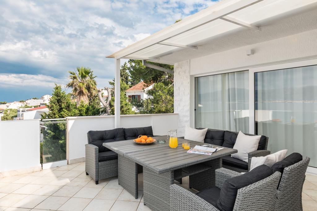 I spent two weeks of September 2015 in apartment E and I must say that this was one of my best vacations ever. I enjoyed beauties of Croatia, old town Trogir and especially accommodation. The apartment was really huge and for our four family members there was plenty of space (there could be six of us without issues). We really liked beautiful view from the terrace, which itself is gorgeous. Everything worked as expected, bathroom without issues, fully equipped kitchen, fridge with cooling bottle for drinks, microwave, washing machine and all the other stuff. The only small issue was temporary dropout of internet connection, but at least I stopped checking my e-mails and enjoyed vacation:) Distances to nearby locations were completely OK. Sea was 50 meters away, just across the street, and the beach is beautiful, with clean water. Nearest shop is around 200 meters away, nearest restaurant as well. I\'d also like to highlight the owner, Mrs. Belas. Friendly, communicative, always willing to help, I can\'t imagine better service than hers. After all I\'d really recommend Marine apartments as great place where to stay in Croatia.