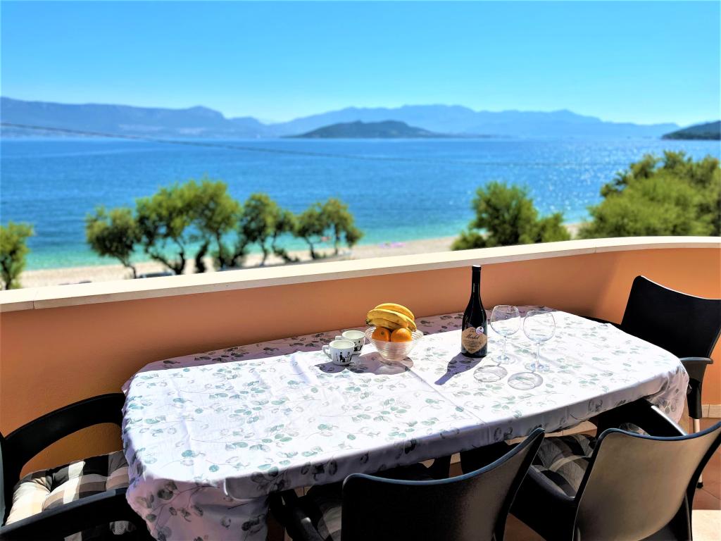 Fully and modernly equipped apartments in a quiet area of Slatina, located first row to the sea, 8 meters walk to the beach; the facility is located a 4-minute walk to the center. In front of the apartments is a pebble beach, ideal for swimming. From the terrace of the apartment there is a beautiful view of the beach, the sea, Kaštela Bay, Split, Trogir and the town of Slatina itself. The apartments are comfortable, equipped with satellite TV, wireless internet and air conditioning. In the garden of the house there is a summer shower and a grill available to guests. Parking is provided for apartment guests. Slatine is a small fishing village where you can buy fresh fish, local vegetables and olive oil. In the summer, festivals and sports events are held. Restaurants, pizzerias, taverns, coffee bars and shops are located in the very center of the town, just a 4-minute walk along the sea from our facility. On the southern side of the island of Čiovo, only 2 km from the apartment, there is the famous shrine of Our Lady of Prizidnica, which you should definitely visit.