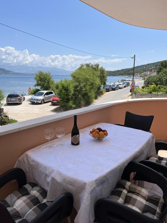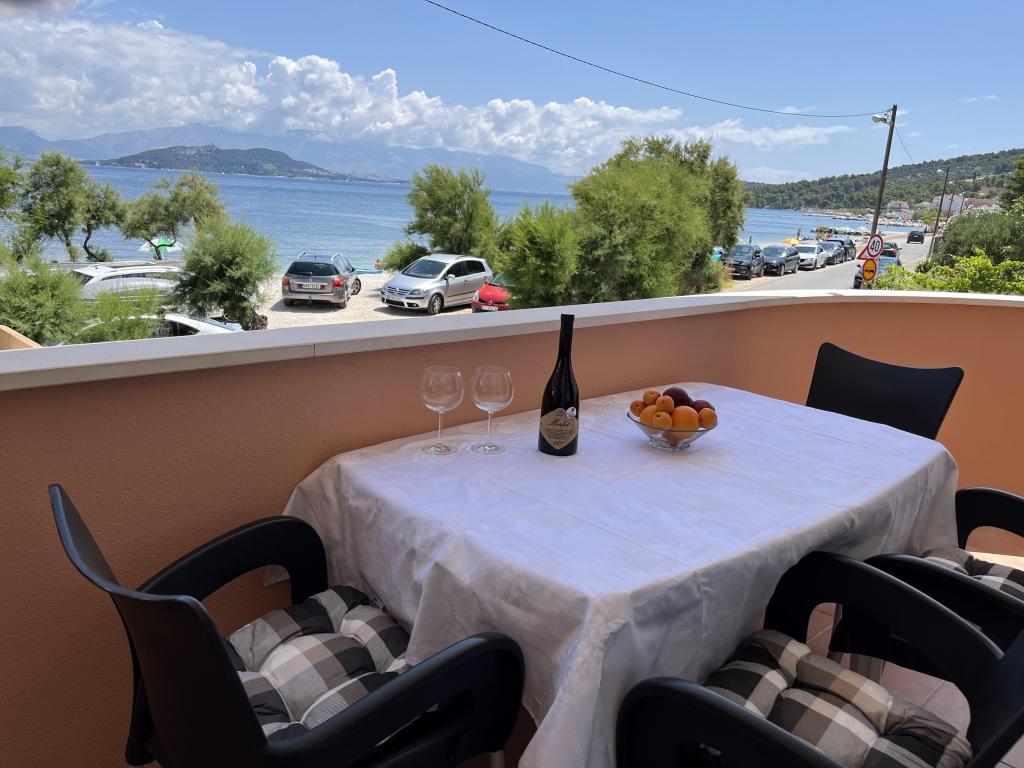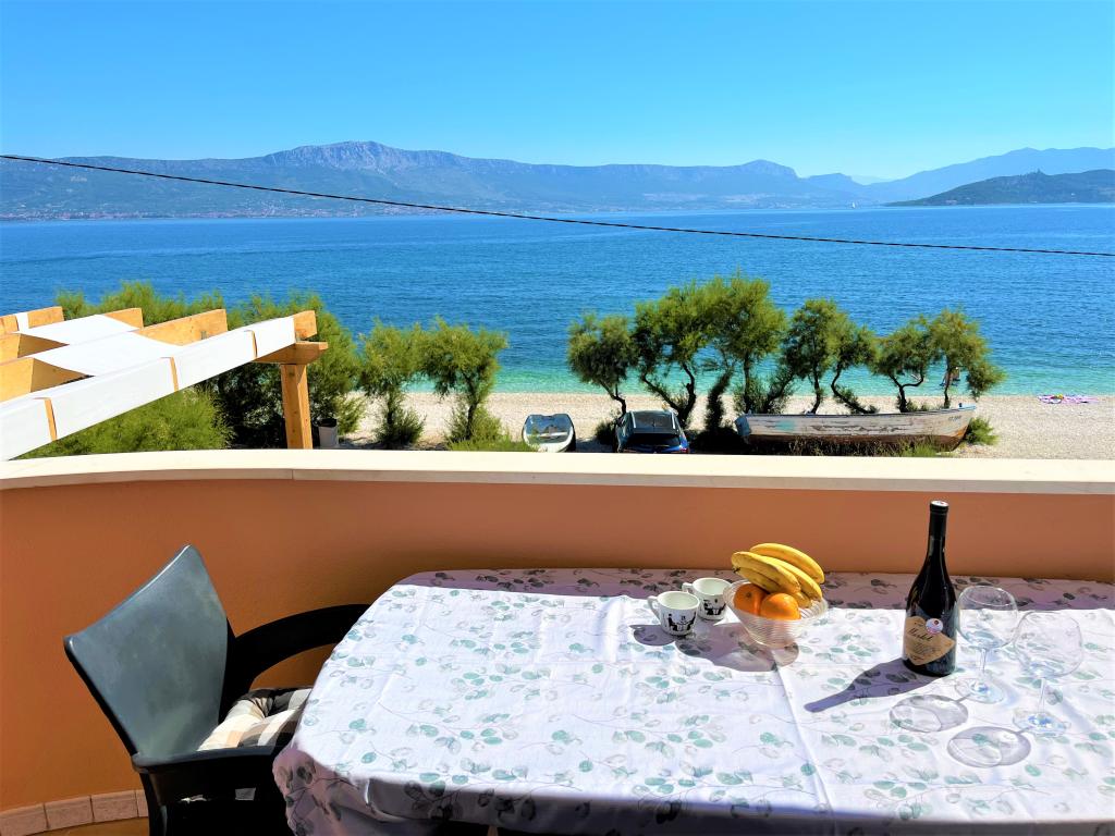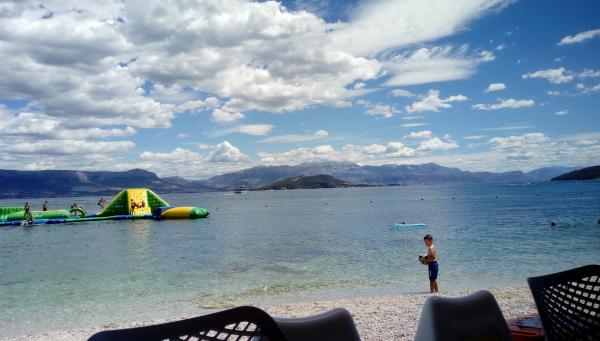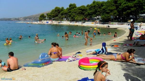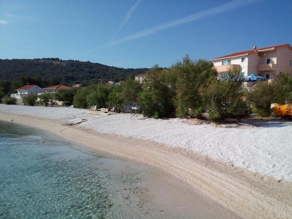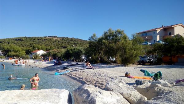 The apartments are located in the immediate vicinity of the beach, only 10 meters away, with a beautiful sea view. Very clean, equipped with all the necessary things. The owner is very kind, helpful and takes care of her guests. Arranged beach with fine pebbles and an outdoor shower. The place is in a quiet area. However, it is close to bars, restaurants and a water playground. Close to excursions to Trogir and Split. You can get there by public transport and ferry.