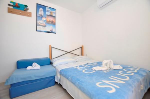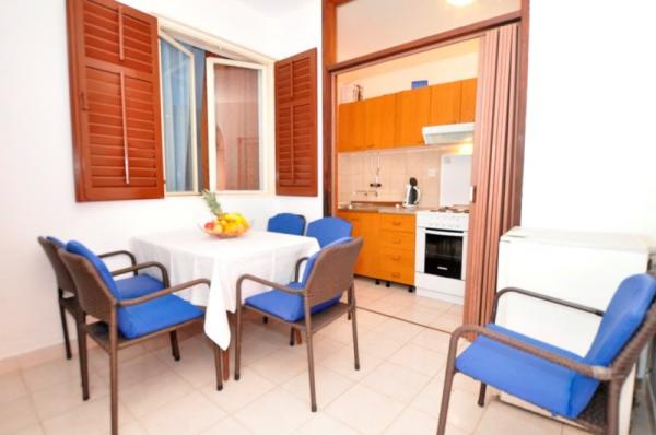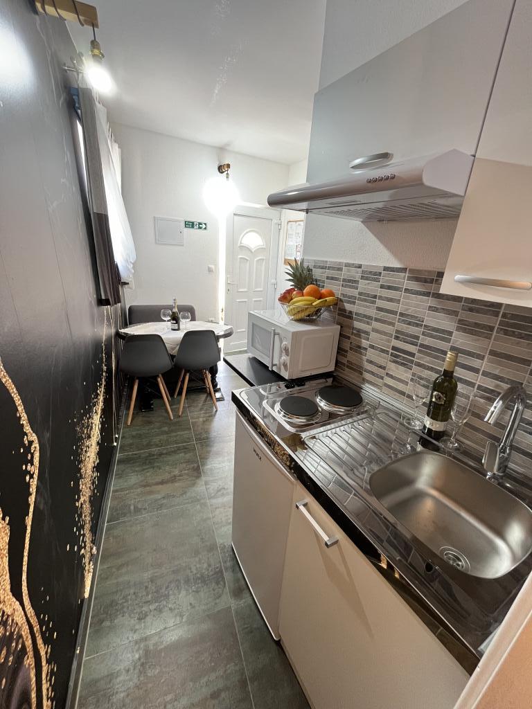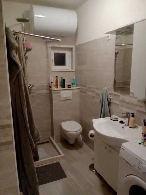 We can only recommend this apartment. Not only was it in a quiet part of Slatine, but it also met our requirements (quiet, away from people, small terrace, ...). The hosts were very accommodating and fulfilled all our questions and requests immediately. We were accommodated in 2+1, two adults. According to the photos, the apartment looked bigger, you might be surprised that the kitchen is in the hall, but everything was clean, quite new. A big advantage was parking in the yard of the apartment and the possibility of using the garage as a storage place for water tools. The beach in front of the apartment is the most beautiful and largest in the whole of Slatine, there was plenty of space on it, people were cleaning up after themselves. The sea is beautifully clean, full of fish! There is a grill and a bar in the accommodation - but we did not use it. According to the host, it is used when there is a larger group of people and they gather for a beer. The nearest larger shop is quite far (1 km) and the restaurant about 800 m by a beautiful walk along the coast. That's why I recommend buying in a bigger city (Trogir - Plodine, Kaufland).