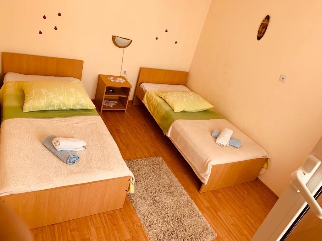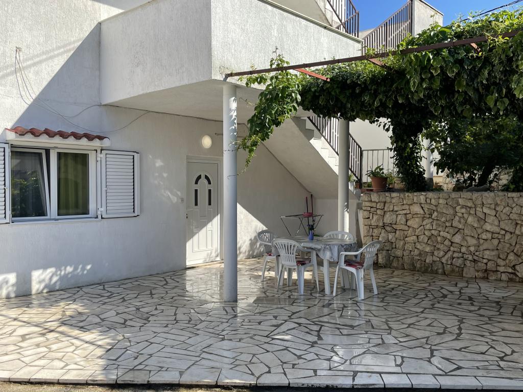 The accommodation facility is located in a beautiful, quiet and attractive small town Slatine which is 6 km away from the UNESCO city of Trogir, 30 km from the UNESCO city of Split. The accommodation facility is away from the pebble beach and the sea only 50 m. The accommodation facility has a sea view. The accommodation is surrounded by peace, quiet and a well-meaning neighborhood. The property has its own fenced car park which is free of charge. Accommodation facility consists of two accommodation units (Apartment A4 + 2 and Apartment A4.). Each accommodation unit has one free parking space in the courtyard of the accommodation facility. Apartment A4 + 2: Apartment area is 65 m2, consists of a large living room and kitchen, 2 large bedrooms with double bed, large toilet and two large terraces, on one terrace there is a fireplace for barbecue. The accommodation unit can accommodate a maximum of 6 people (4 adults + 2 adults on a folding sofa in the living room.) The accommodation unit offers a folding cot. Apartment A4: The area of this accommodation unit is 45 m2. It consists of a living room and kitchen. One room with a double bed and one room with 2 beds and one small toilet. The accommodation unit has a large terrace with partial sea views. On the terrace there is a fireplace for barbecue. A maximum of 4 people can stay in the accommodation unit. Accommodation unit offers a baby cot. Sights of Slatine: The most famous landmark of Slatine is the Shrine of Our Lady of Prizidnice and the Church of the Assumption of the Blessed Virgin Mary. City of Trogir: Trogir is one in a series of cities in Dalmatia that are under the protection of UNESCO. Trogir was founded by the ancient Greeks, and over the centuries, it became the best preserved Romanesque-Gothic city in Europe. In fact, a real castle-museum. In addition to well-preserved walls, towers and city gates, here you can see the beautiful city palaces, numerous churches and monasteries, as well as the cathedral wi