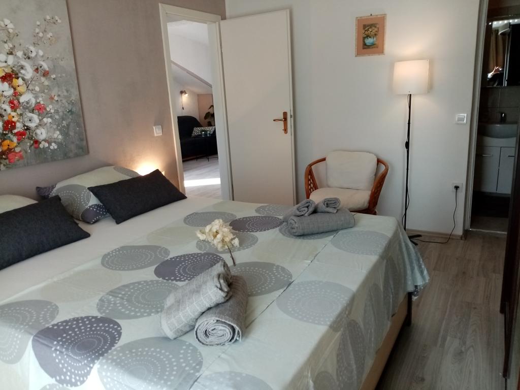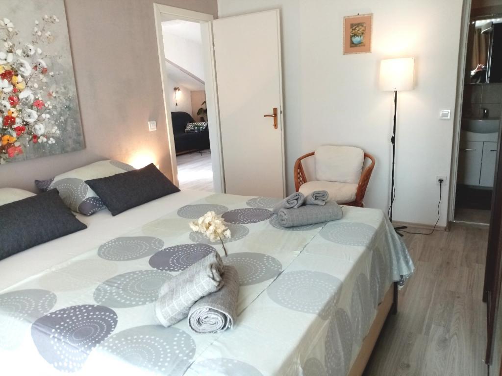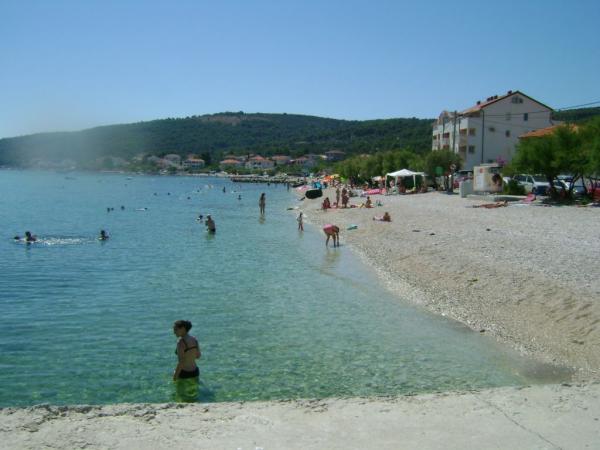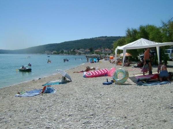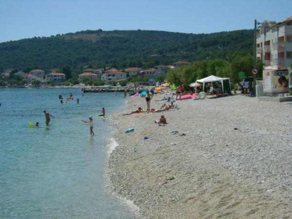 Nice clean apartment, equipped with washing machine and dishwasher, close to the beach, restaurants and shops. Towels available. Mrs. Željka very nice and helpful. A nice garden with a trampoline, which will be especially appreciated by families with children. There is a port nearby where you can board the Bura Line ship and go to Split or Trogir for a very good price. You can also use the city bus service to Trogir.