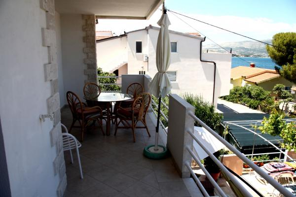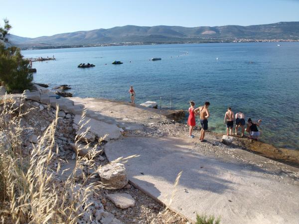 Modernly equipped apartments at the beginning of Slatina, second (quiet) row house. From the center of the house the house is about 1 km away. In the place there are groceries and drinks, restaurants, cafe, post office, doctor, baker ... The facility is located a 5 minute walk from the supermarket, 1 minute walk from the beach, 5 minutes walk to the nearest restaurant. In front of the house there is a concrete beach and in the immediate vicinity there is a pebble beach with cafe bar. A 10 minute car ride is a natural pebble beach with a buffet (ideal for small children). In front of the house, in the sea is a buoy (buoy) where it is possible to moor the boat free of charge. In Slatine it is possible to land a ship in the sea. Parking for trailer is NOT secured but can be solved. Trogir is 5, 5 km away and there are all the necessary facilities. From Slatina it is possible to go to Split or Trogir by boat. Boat trips last 30 minutes. From Trogir it is possible to go to various islands and day trips. Split is 20 km away from Trogir, connected by modern and new road.