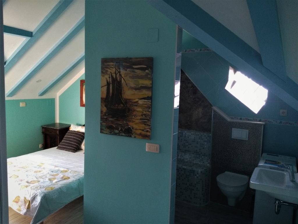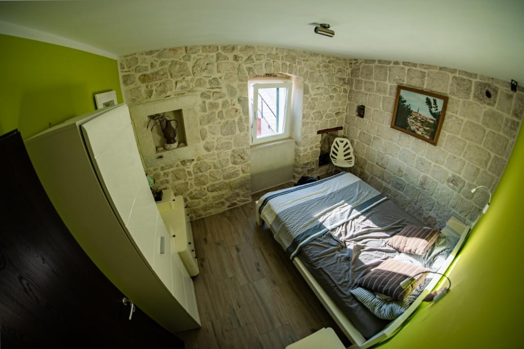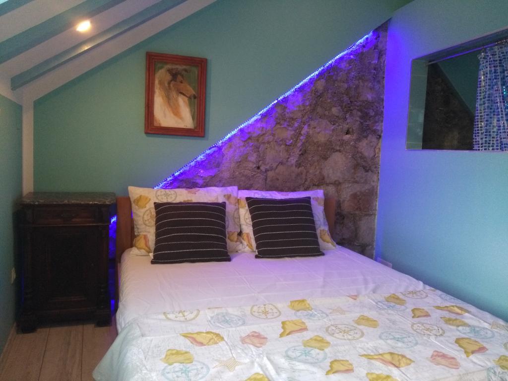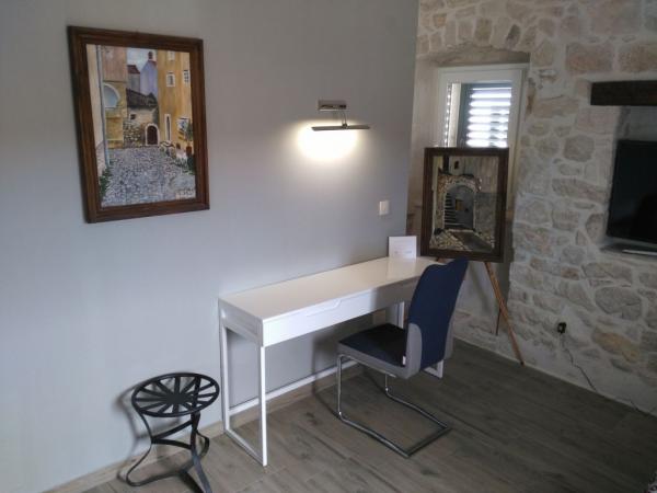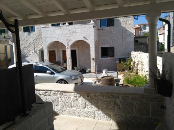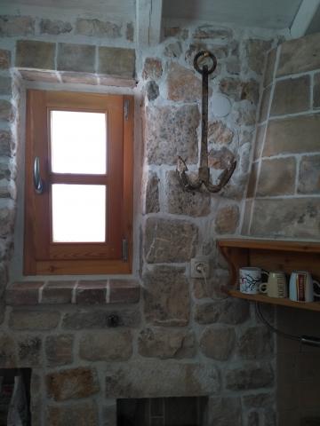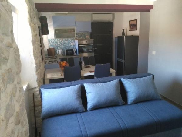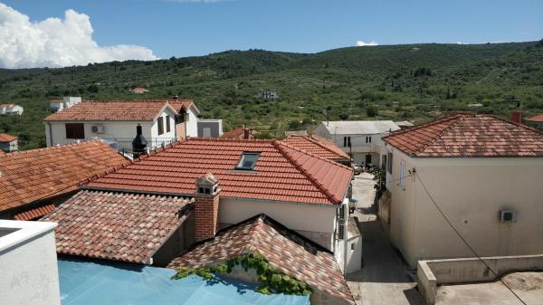 Residential tax is included in price. Booking confirmation document upon reservationThe house is unique in its architecture, in nature it is a very old stone villa with skylights on the roof, a veranda decorated with stone vaults and a terrace, and in front of which there is a courtyard adorned with a beautiful small stone house, in which there is a chimney with a grill and oven, and massive wooden benches and a table, thus creating a summer kitchen for exceptional gourmet get-togethers and experiences of local traditional cuisine, with homemade wine and brandy also available to guests. In front of the entrance to the apartments on the 1st floor, there is a large terrace (loggia) with a space where you can enjoy a cup of tea, coffee or a glass of wine. Smoking is also allowed here. A large terrace with wooden benches and a table in the courtyard next to the summer kitchen and a solar shower are available to guests. In the attic, on the 2nd floor, there is a large and spacious apartment with a large living room from which there is an exit to a spacious balcony, and two separate rooms, each with its own bathroom. One room has a double bed 200x160 and the other has two beds.