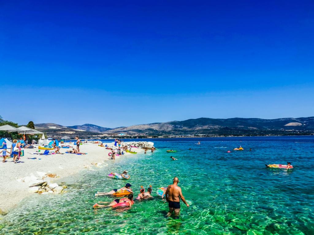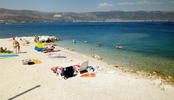 Fantastic place! Quiet neighborhood, close to shops, restaurants and tourist attractions. Trogir 15 minutes, Split about 1/2 hour by car. There is also a well-functioning public transport. Split airport nearby. The island of Ciovo itself also has many interesting excursion destinations to offer. The biggest advantage, however, for me, is the beach and the sea at a distance of 10-20 meters ... It is enough to cross a little busy road. Relatively gentle descent to the water. Pebble beach .. like in Croatia And the owners! Extremely nice, friendly and sympathetic people. We know and see each other every summer, recently even twice a year, for several years. I would highly recommend!