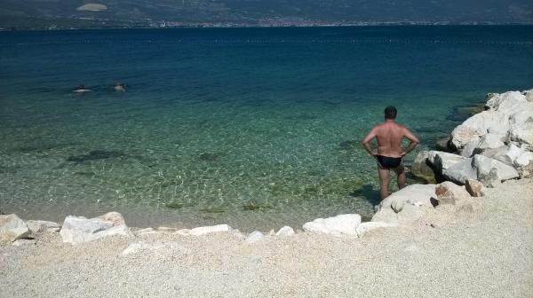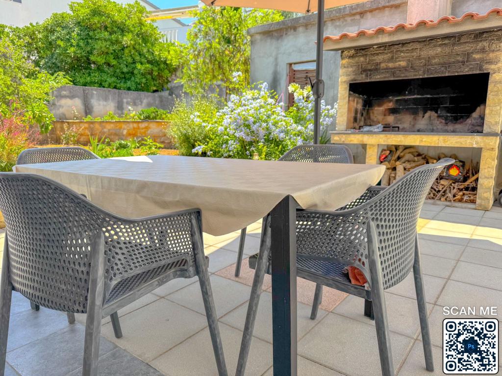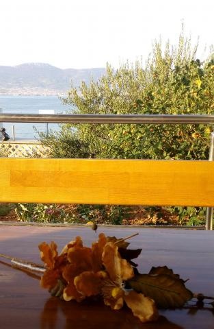 I heartily recommend staying in this apartment because of the distance from the sea (10m) and because of the hosts who are extremely nice and very open. Apartment 2 + 2 nice decorated. On the plus side is the side terrace from which you can see the sea, and olive trees give shade.
