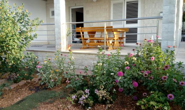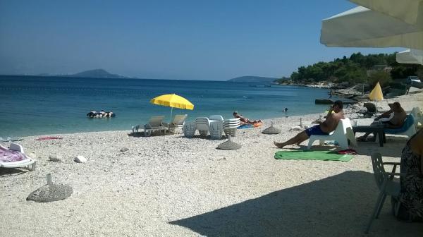 The apartments are located in a quiet part of Slatina, are located first row to the sea, 10 meters walk to the beach. In front of the apartments there is a pebble beach, ideal for swimming. The apartments are comfortable, equipped with TV, wireless internet and air-conditioned. In the garden there is a grill available for guests. Parking for all guests is provided. Restaurants, taverns, cafe bars are located 4km from the apartments.
