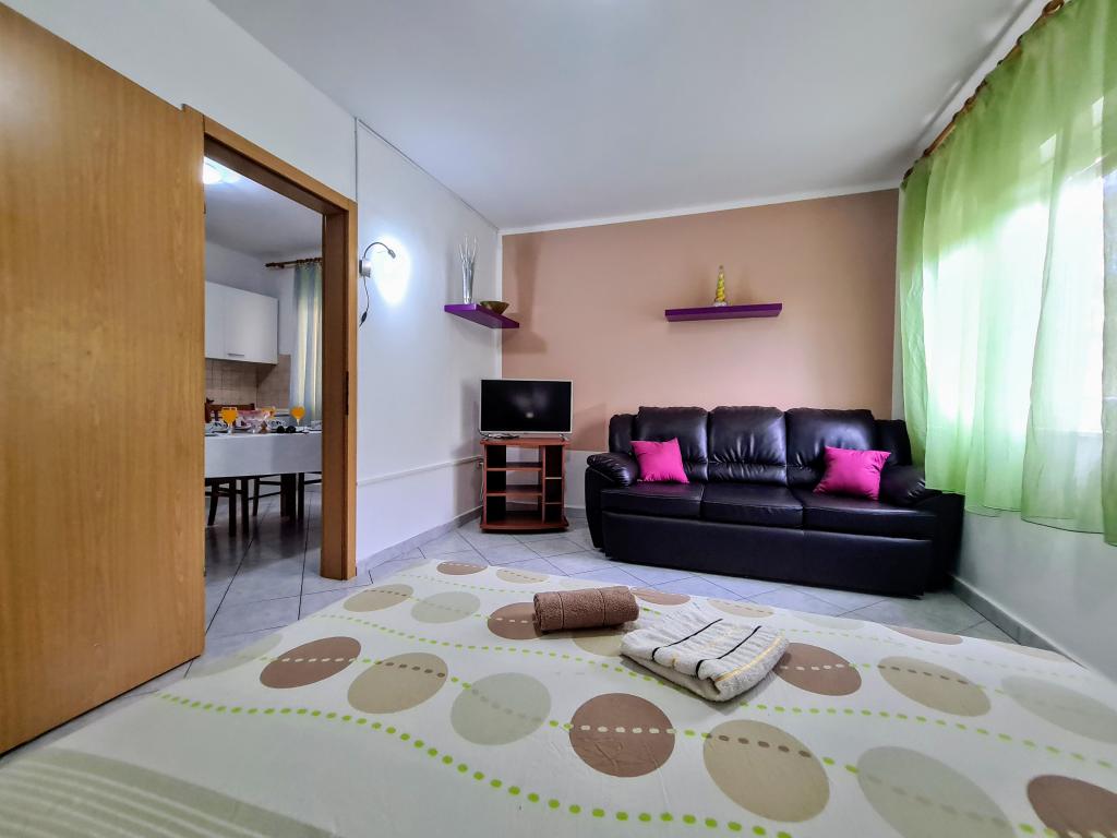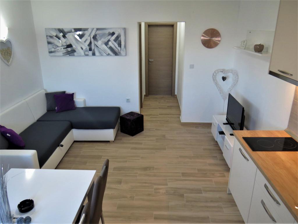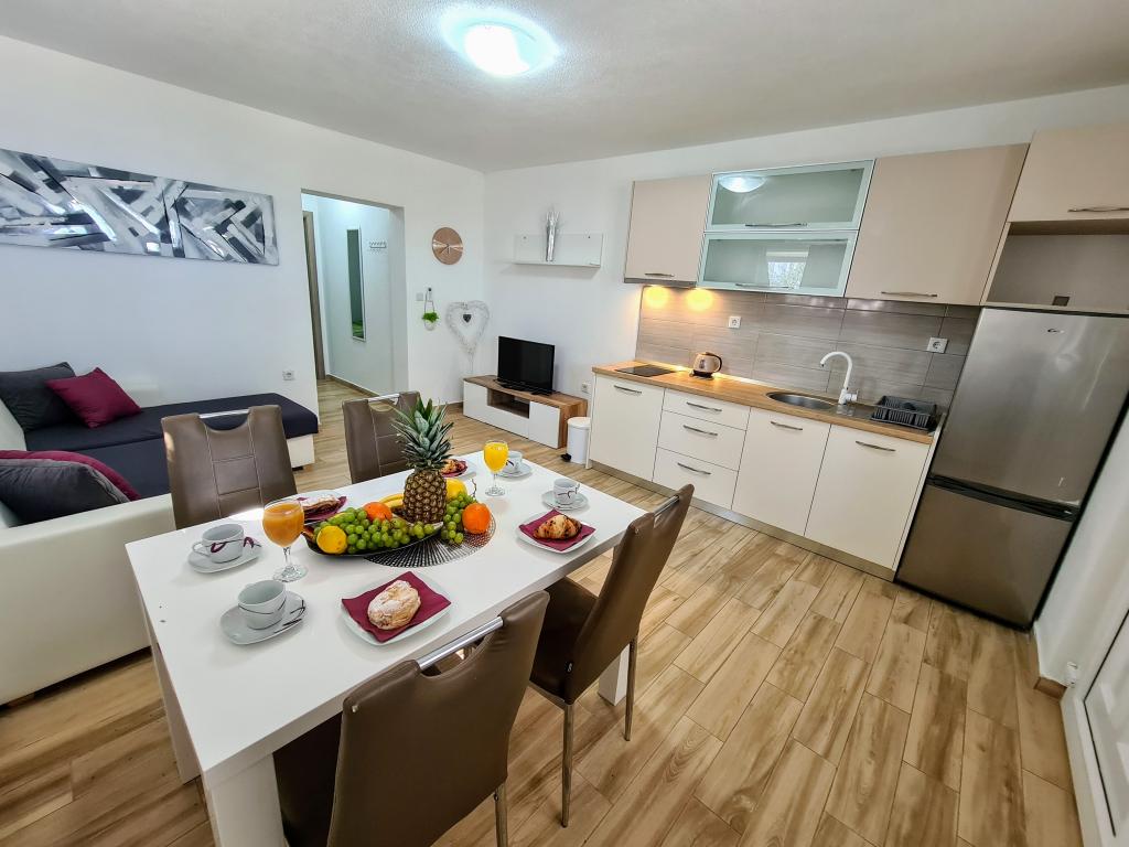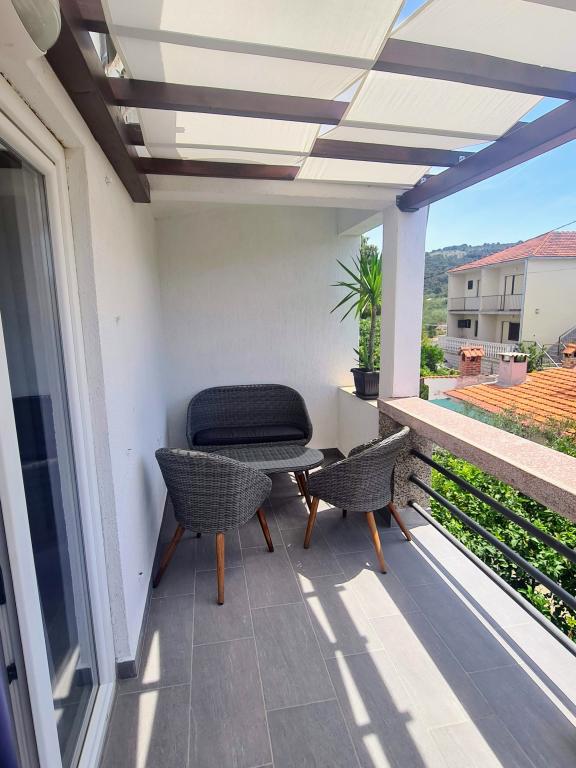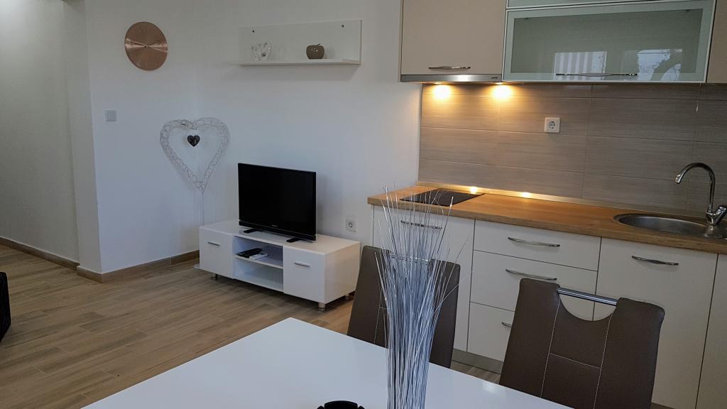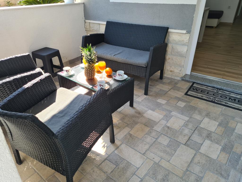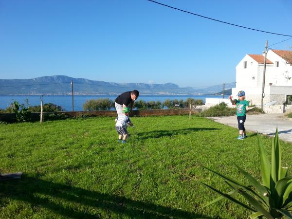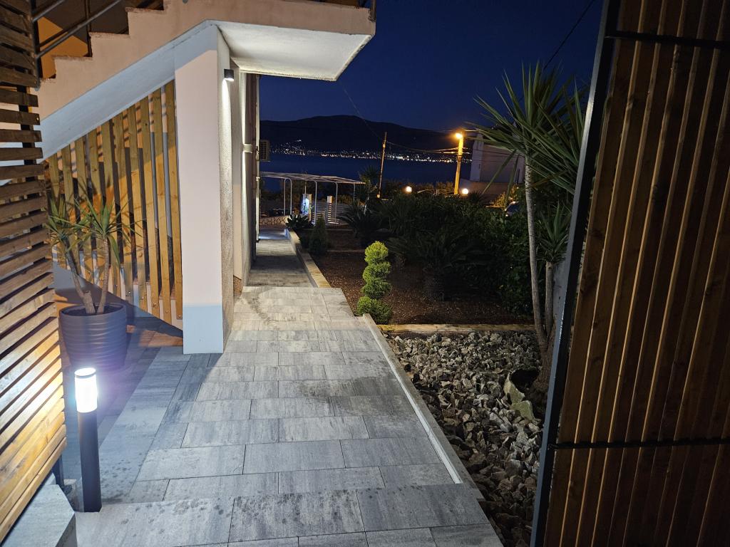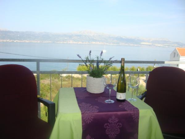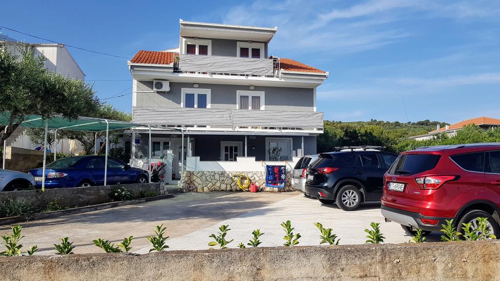 Apartments Villa Palma in Slatine are 15 m from the sea. All apartments have a view of the sea. The apartments are comfortable and equipped with: air conditioning, sat/tv, wi-fi. They are located on an area of 1000 m2. In front of the apartment there is a beautifully decorated garden with a grill where you can enjoy socializing with friends with Mediterranean plants. They are located in an ideal position, 300 m from the center and 15 m from the sea, so that you can to spend in peace, enjoying the sea and the sun, and at the same time, if you want a more active vacation, in the center of the town there are beach bars, coffee bars, restaurants and sports grounds. Guests are provided with parking and a garage where you can leave your things for the beach. Also in front the apartment also has a garden of 150 m2, which is suitable for children's play while you watch the children in the garden from the terrace. The friendly hosts will be happy to help you organize your excursions, fish-picnic, rent a boat, bike, scooter... as well as everything among other things! Slatine is connected by a boat line with Split and Trogir several times a day!