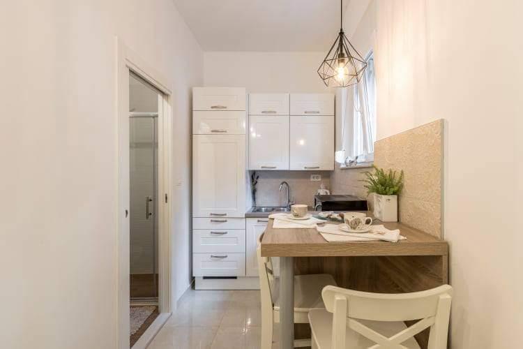 Newly renovated studio apartment in Split, Bačvice. It is located in the immediate vicinity of the most famous city beach. All the necessary facilities are at a distance of up to 100m. The facility is located a 5-minute walk from the waterfront and Diocletian's Palace, which is definitely worth a visit. In front of the apartment is a large terrace for use. The parking space is next to the building on a public area.