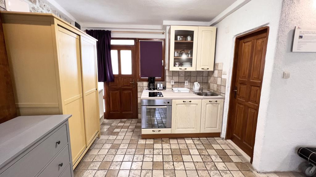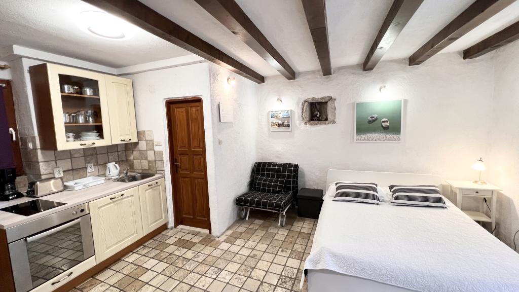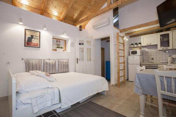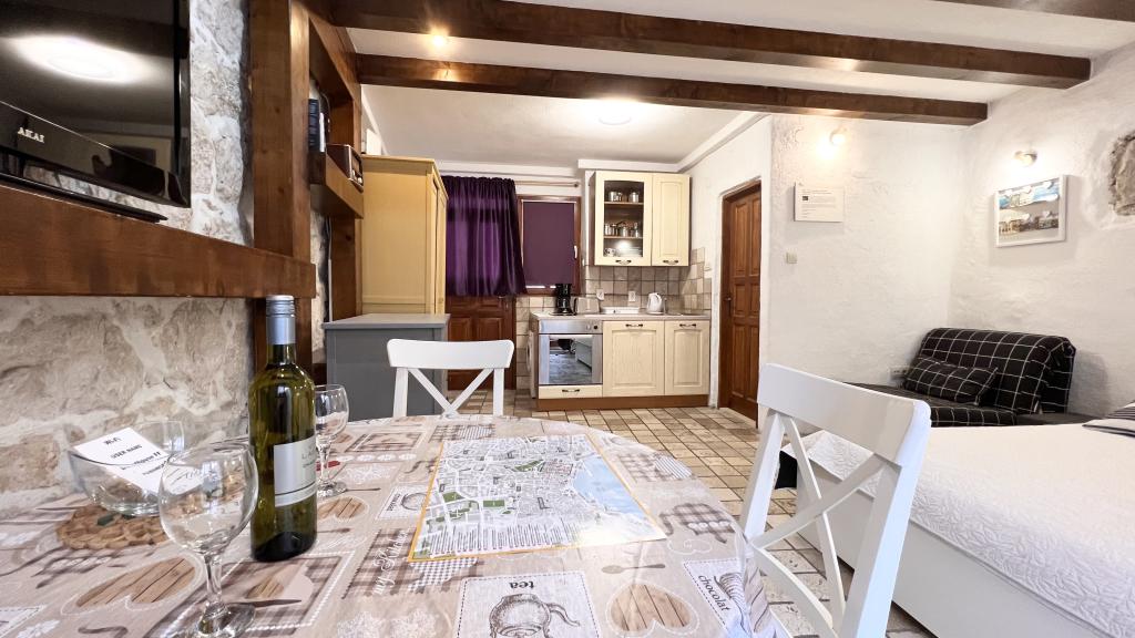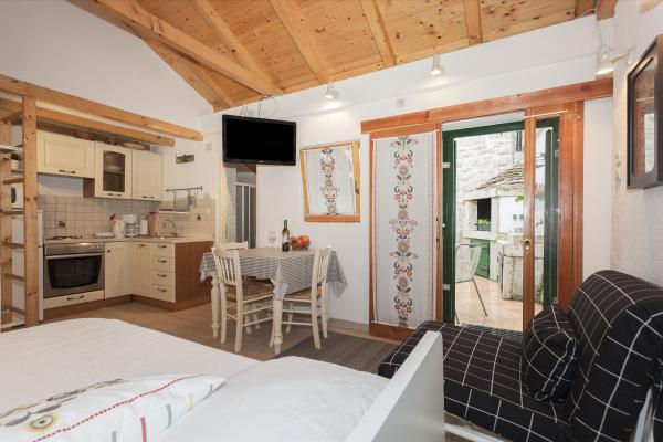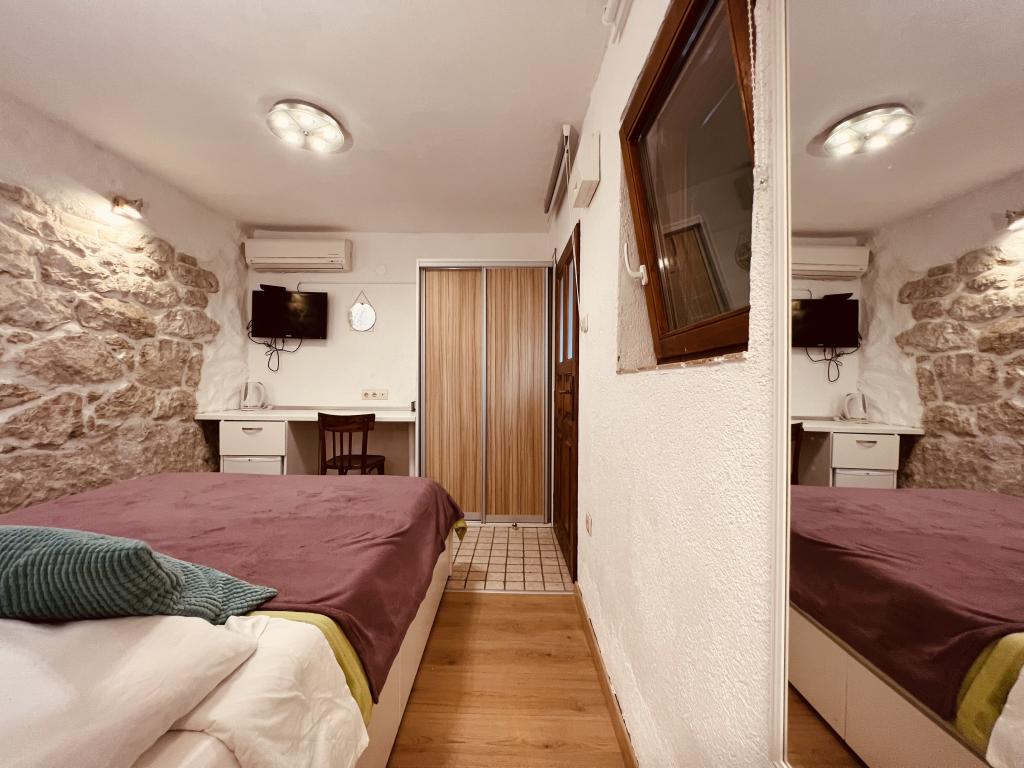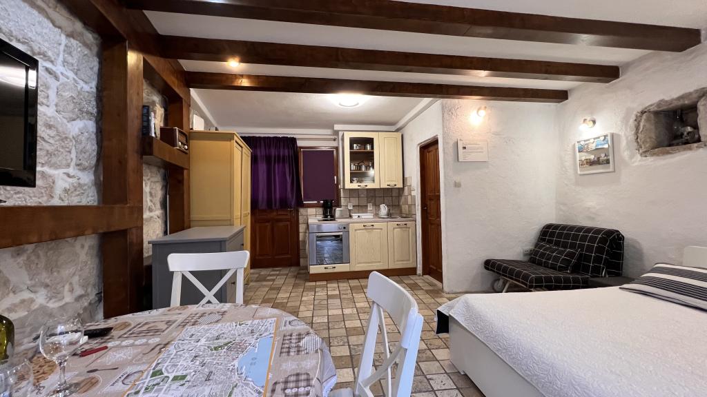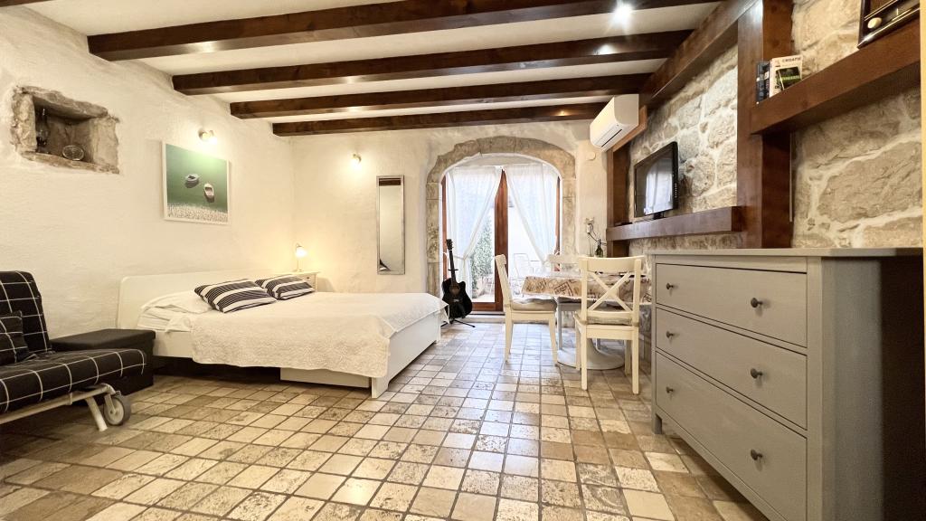 GUARDIAN has chosen STUDIO: One of the 10 best European hotels and another accommodation that the holiday really enjoys: Studio apartments are in an old house, recently decorated in the old part of town, in a quiet street. Ideal for your vacation in the city center, and a pleasure and a clean Dalmatian atmosphere. Studio apartments have a double bed, extra bed, kitchen, shower, TV, air conditioning, radio CD, hair dryer, free internet, free public parking ... Due to its convenient location there will be no need for your car during your stay in Split. Everything to have a relaxing stay at hand in the city center, waterfront, Marjan hill, numerous beaches, shops, ferry ports, bus station, all can be reached on foot, in the gentle Mediterranean air. The city center is 100 m away. A fireplace can be used in the courtyard.