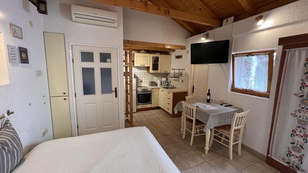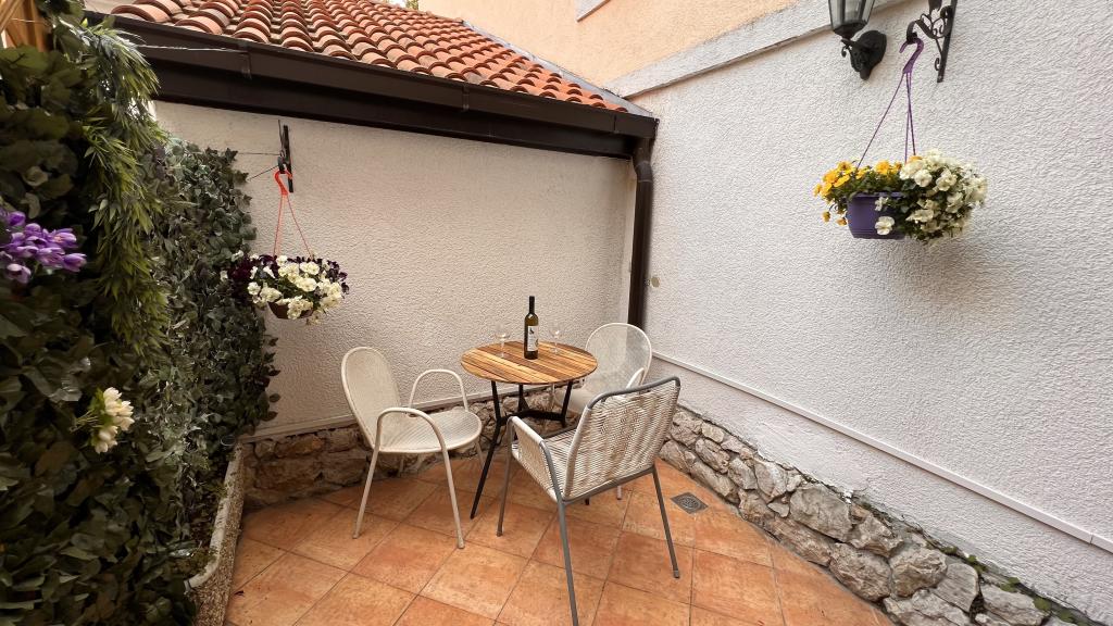 Guesthouse house F is perfect. It's located in centre of town, 5 minutes walk from main promenade Riva, restaurants, bars, shops... Also if you like to walk/drive bike in the woods, Marjan hill is 15 minutes walk from the apartment. Apartment has beautiful little backyard with fireplace. Everything is very clean and tidy. The owner is great, very easy to communicate and is at your service if you need anything during your stay. Also he greeted me with a nice bottle of wine.