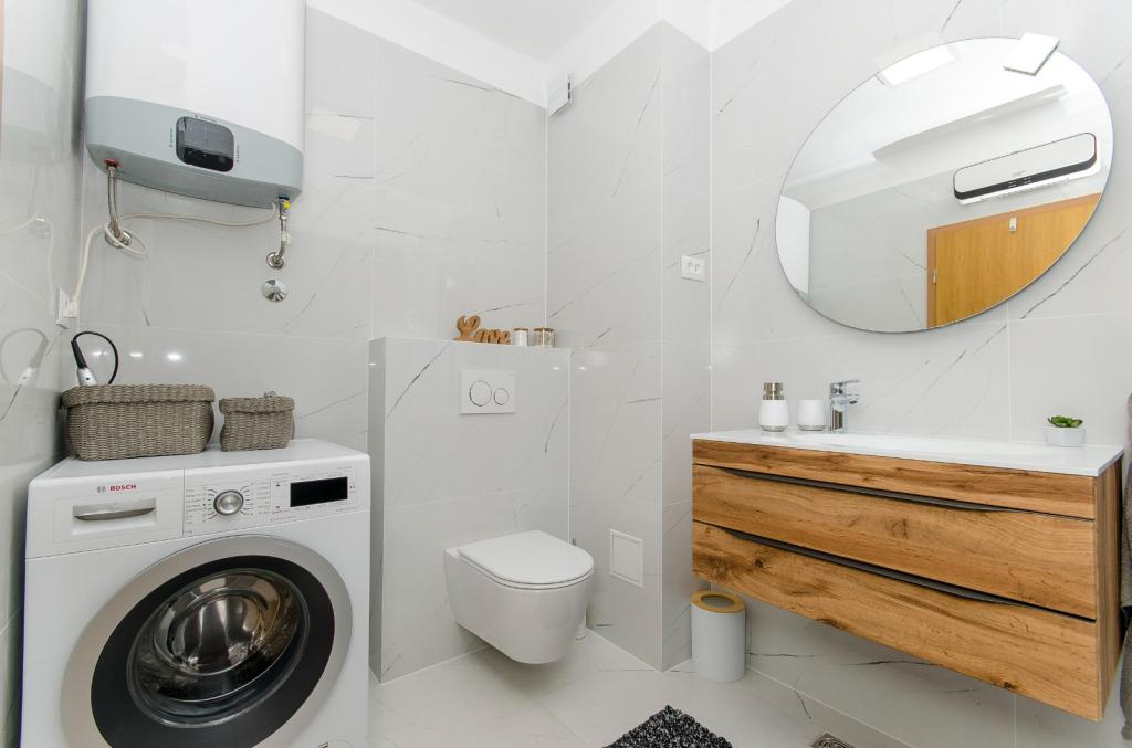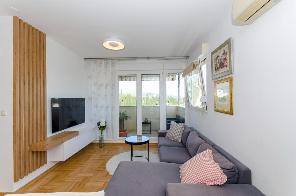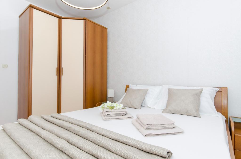 Fully equipped and modern apartments are located in new residential buildings in a quiet part of Split. Apartments 4+1 and 5+0 are located in the Pazdigrad neighborhood. The address is Put Duilova 4a. Apartment 2+2 is located at the entrance to Split, in the part of the city called Sirobuja. The address is Stobrečka 26 Apartment (4+1) consists of two bedrooms, a bathroom with toilet, a kitchen with a dining room, a living room and a terrace with a beautiful view. In one bedroom there is a double bed 160 × 200 cm, and in the second bedroom there is a double bed 140 × 200 cm. In the living room there is a sofa bed. Apartment (5+0) consists of three bedrooms, a bathroom with toilet, a kitchen with a dining room, a living room and a spacious terrace with a sea view. In one bedroom there is a double bed 160×200, in the second a double bed 140×200 and in the third room there is a single bed 90×200 for one person. In the basement of the building there are garages which are connected to the apartments by an elevator. The apartments have TV, air conditioning and free internet. Welcome