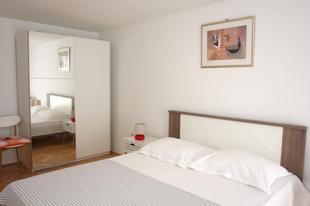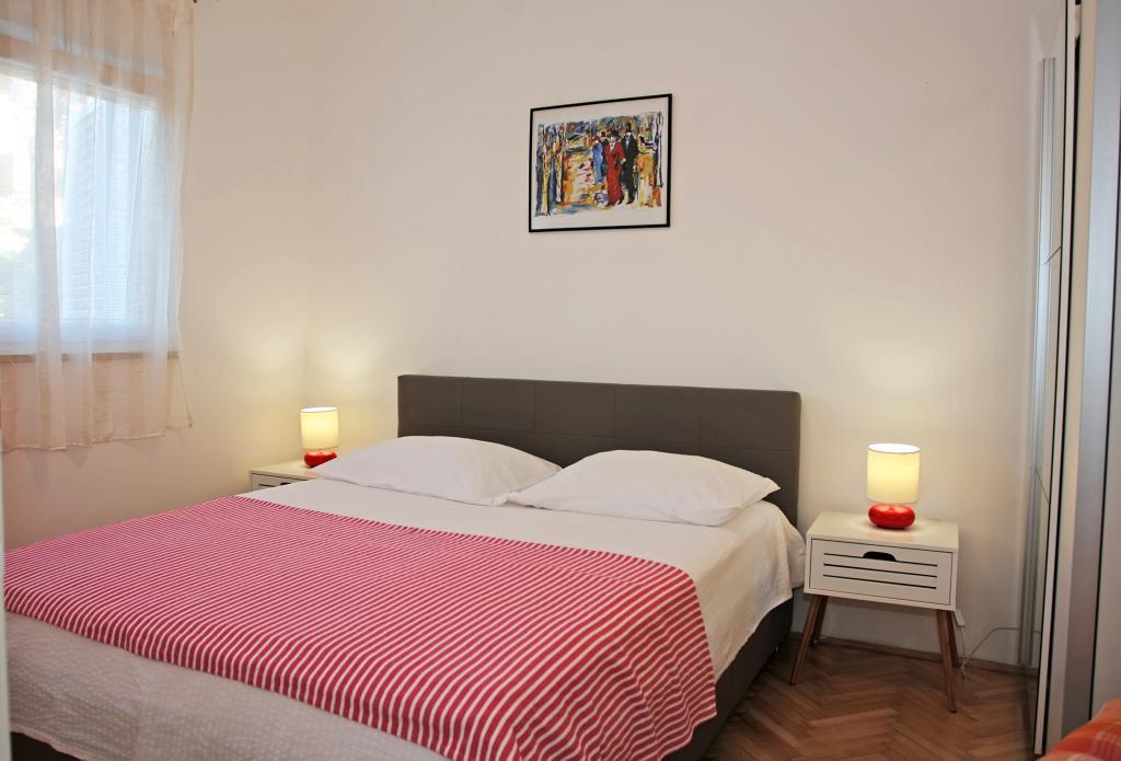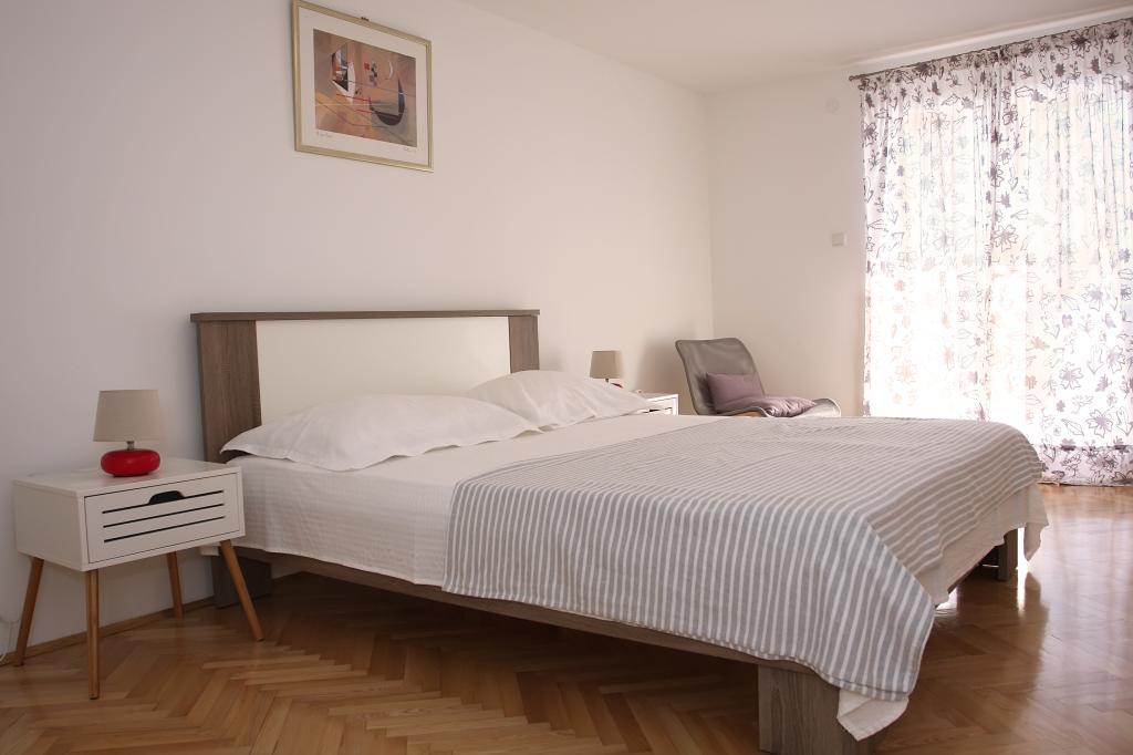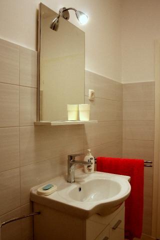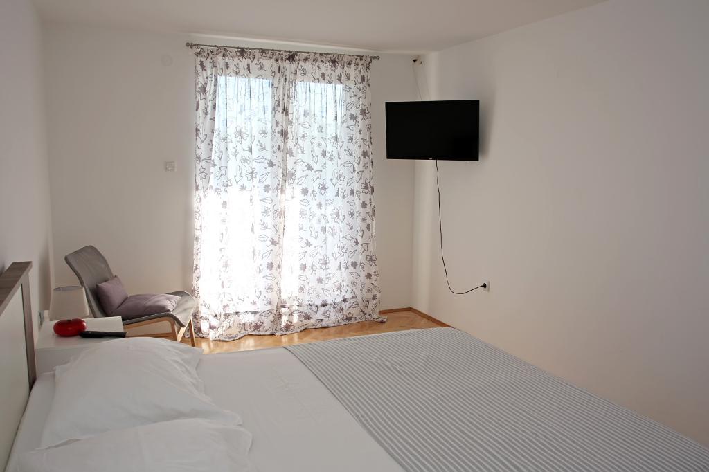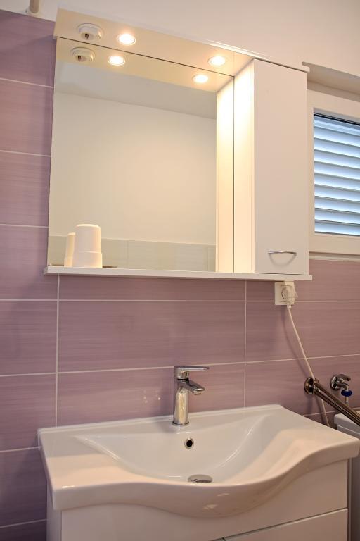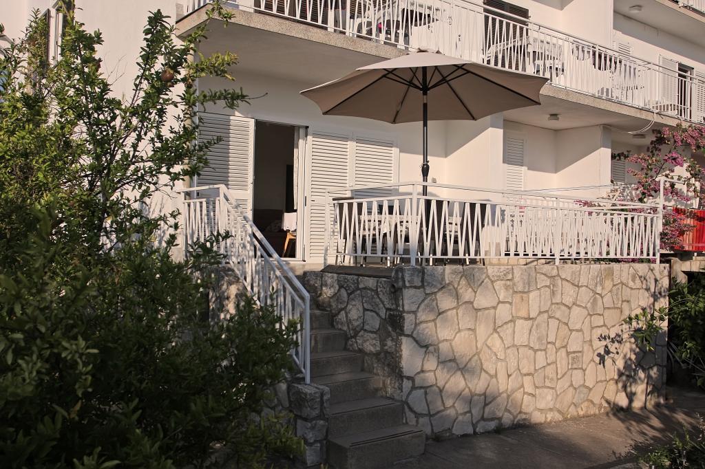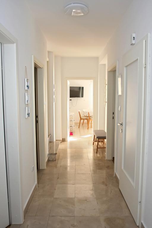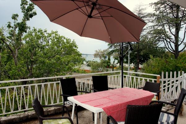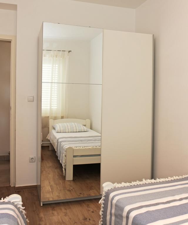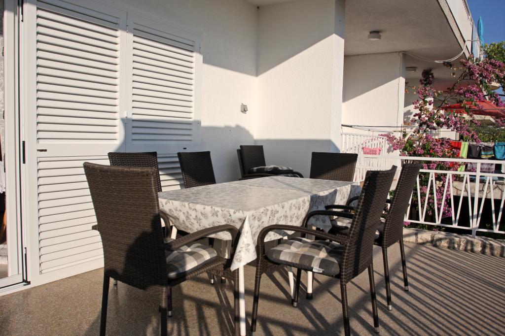 Newly built three-room apartment on the ground floor, first row to the sea. The apartment consists of a kitchen with dining room and living room, three bedrooms, two bathrooms with toilets, another separate toilet, also has a large terrace and another balcony. Two bedrooms have double beds and one has two separate beds. In the living room there is a three seater that stretches into a bed for two persons. The kitchen is equipped with dishwasher, microwave, oven, refrigerator with freezer. One bathroom has a washing machine. There are two parking spaces in the yard, and guests have barbecue facilities. The beach is located right in front of the house.
