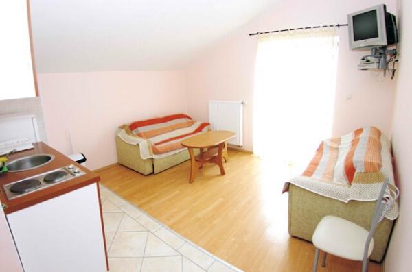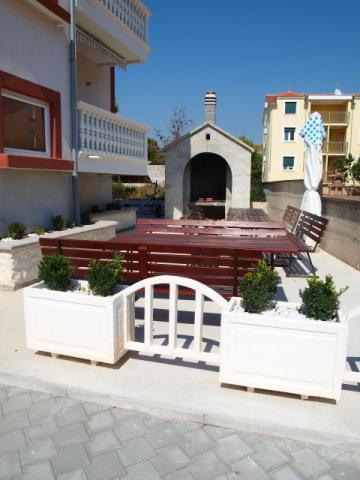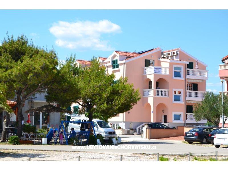 4x Type A - Studio Apartment - Suitable for 2 +1 persons with 1x couch and 1x double bed. 4 x Type B - Studio Apartment - suitable for 2 people with 1x double bed. 4x Type C - Apartment (separate bedroom) suitable for 2 +2 persons with 1x double bed and 2x couch. 2x Type C New- Apartment (separate bedroom) suitable for 2+2 persons with 1x double bed and 1x couch. Apartment Kuća is located on the Adriatic coast approx. 8 km north of Šibenik, about 4 km from the tourist center of Vodice in Srima. The location is quiet and absolutely close to the sea (approx. 30 m), where the sea is shallow, partly gray sand with pebbles and a pebble beach. There is a large parking lot and barbecue in the yard of the house. Next to the house is a small cafe, about 800 m is a small shop and restaurants. A small train runs to the city center, which is 4 km away. We offer our guests comfortable and well-equipped apartments in one of our 14 apartments as a practical and cost-effective accommodation alternative. Here you can spend a pleasant vacation with children and friends.