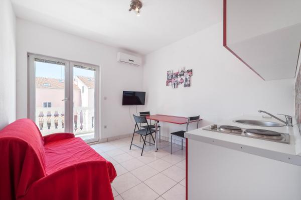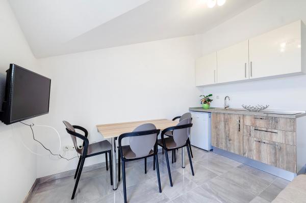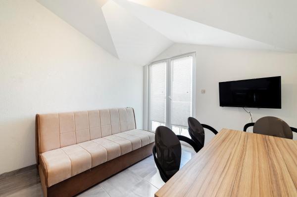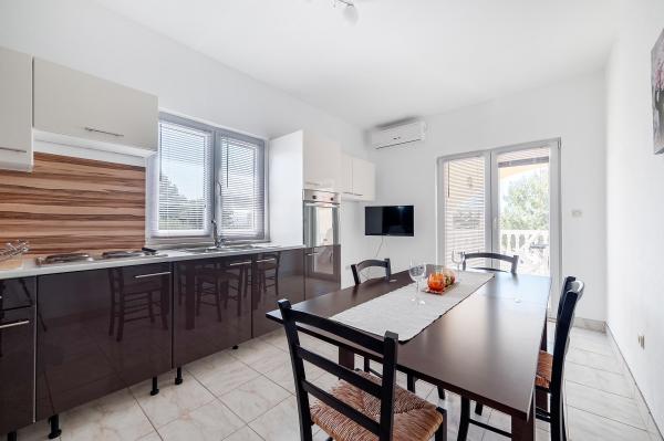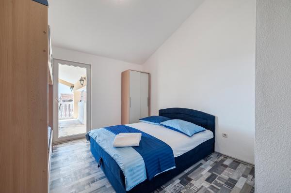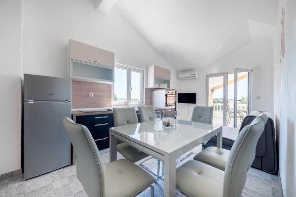 The apartments are located in the quiet town of Srima, next to Vodice. They are only a few minutes' walk from the beautifully decorated beaches and about half an hour's pleasant walk from the tourist center of Vodice. The apartments are equipped with air conditioning, new modern furniture, quality bathroom and TV. In the yard of the house there is a large barbecue free for use.