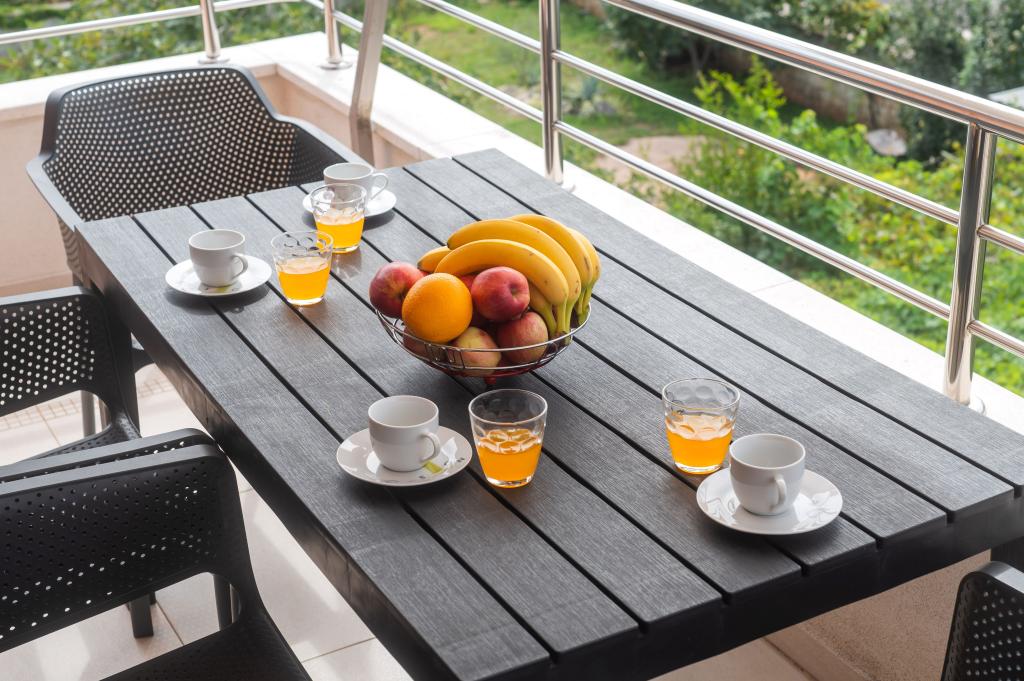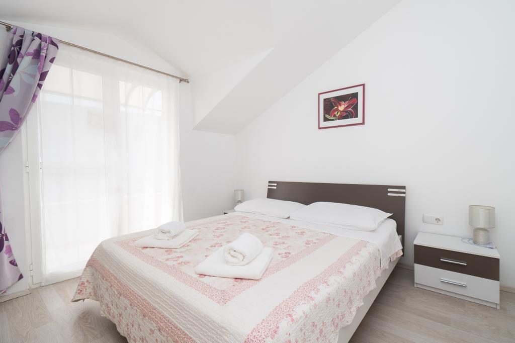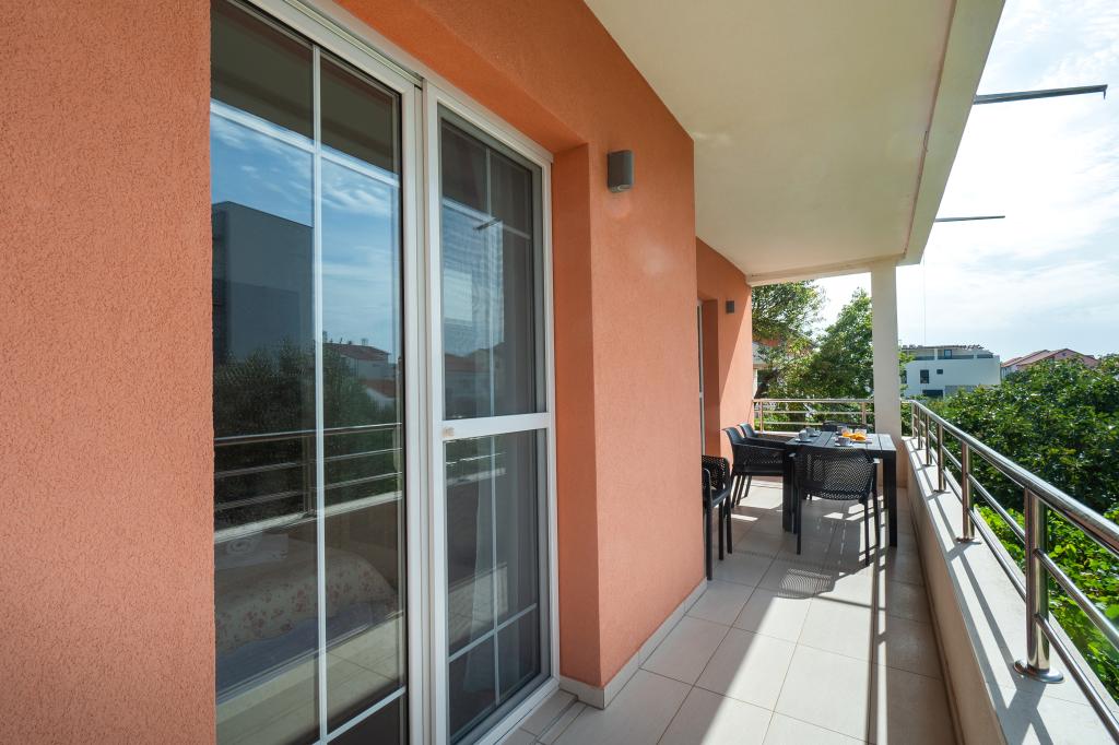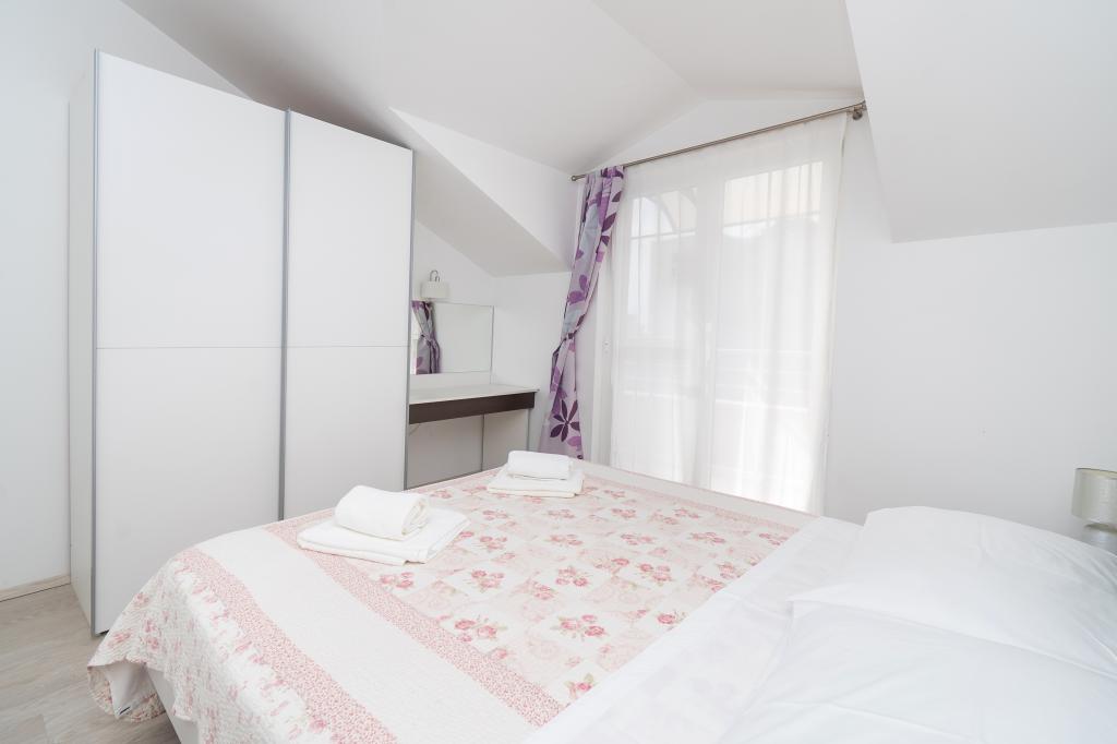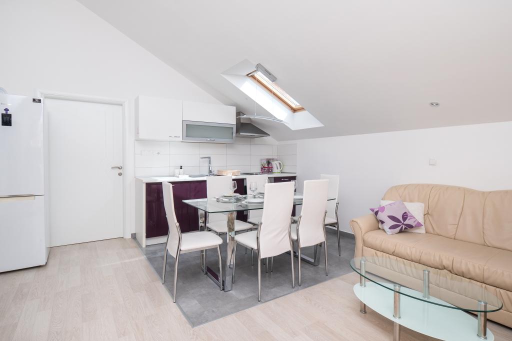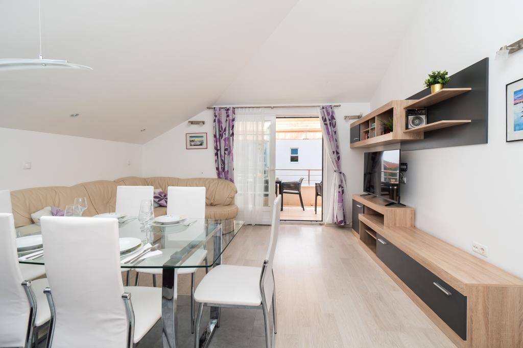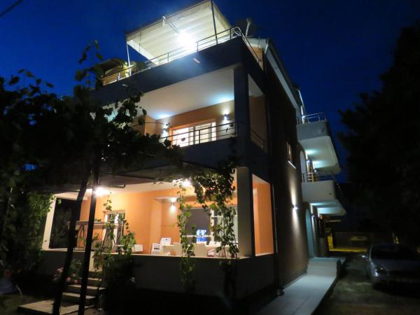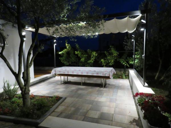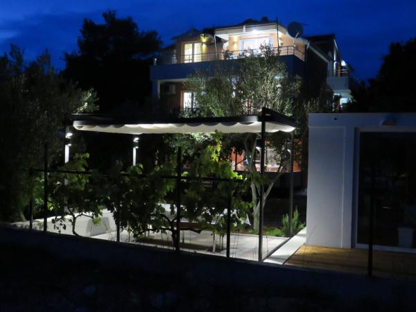 The house is situated in a quiet area. Host very cordial, helpful. The apartment is very clean, neat and modern equipped - consistent with descriptions and photos. Equipment includes everything needed for a pleasant stay, the apartment has a large balcony with a beautiful view of the sea and the island. The nearest beach is pebble, suitable for small children. We thank the hosts for their warm welcome, assistance (and delicious vegetables from the garden owners).