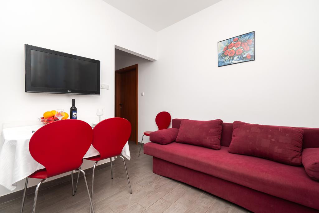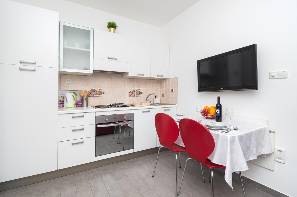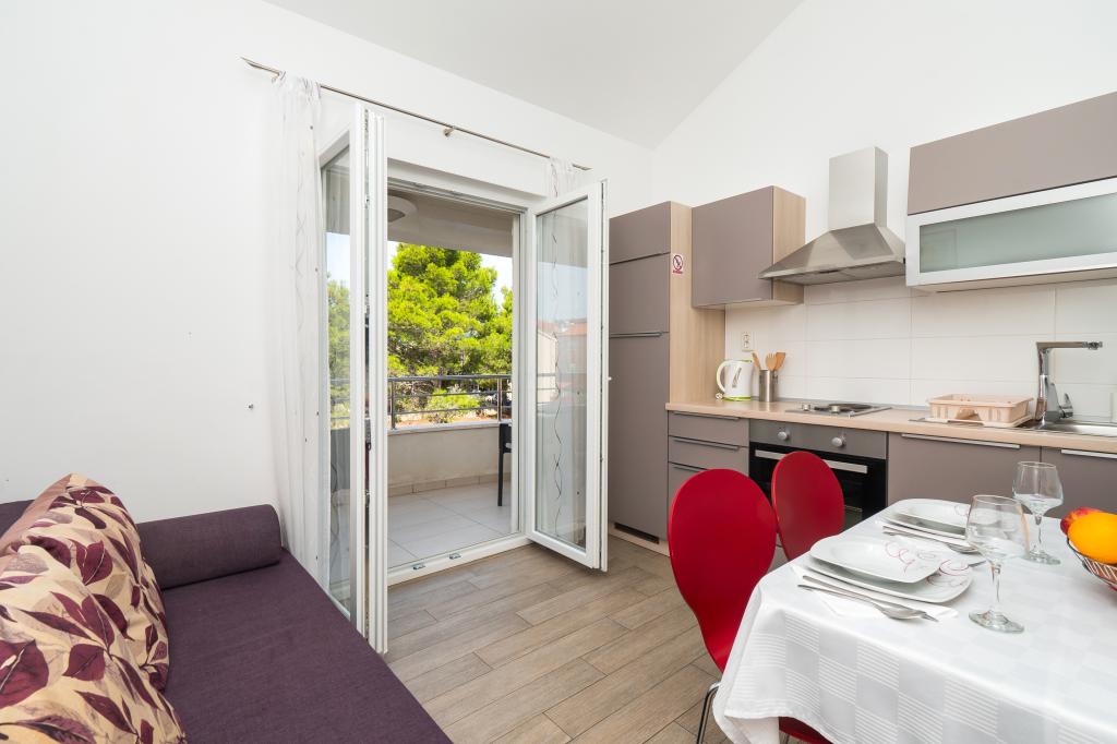 The apartment is nice, clean, modern facilities. Owner very helpful. We will definitely come back again. Around the sea is a nice walk to the center of the wire where it lives. Otherwise, the place of accommodation peace and tranquility, close to the sea, shallow sand suitable for small children. 15-minute drive to Sibenik on a larger purchase.