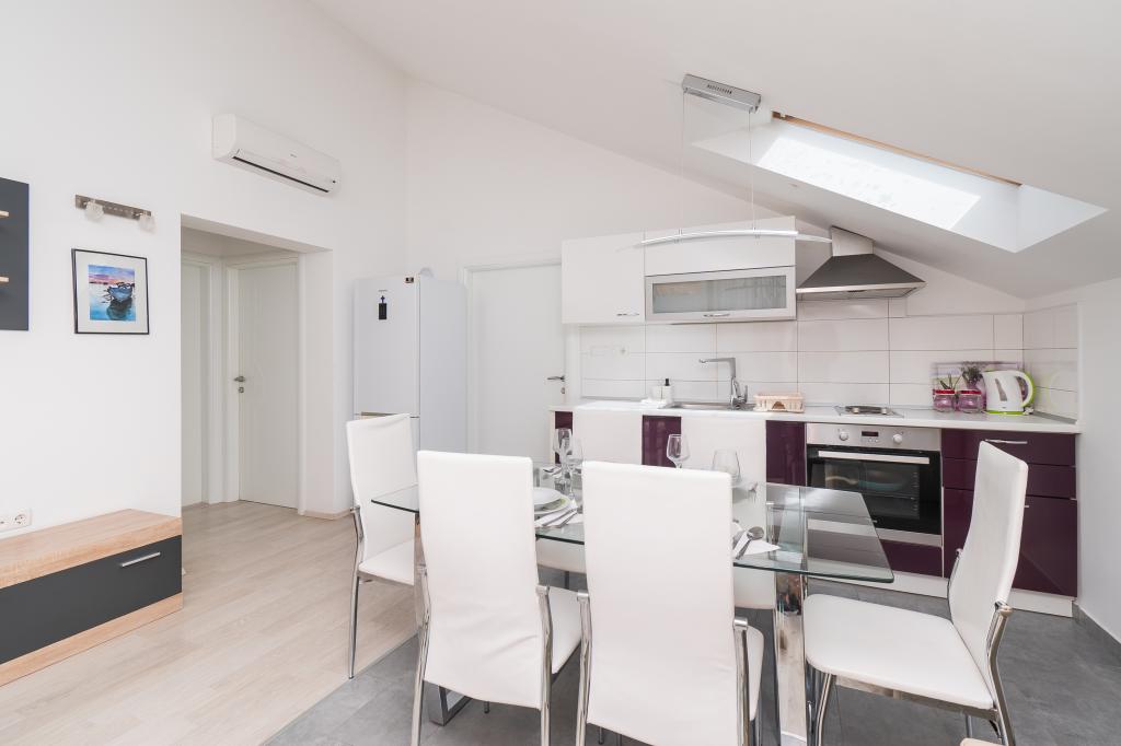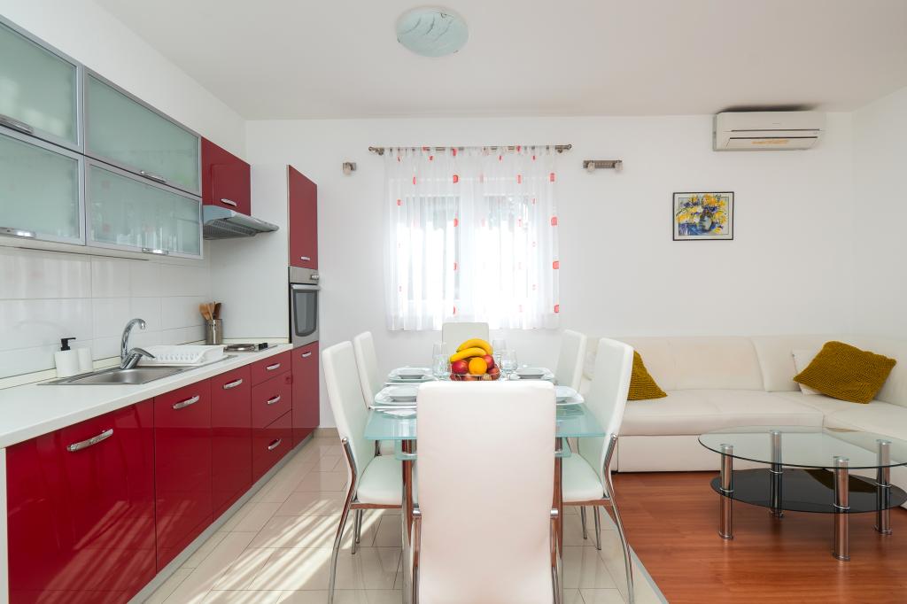 The apartment is very nice, clean, modern, well equipped. It really looks like a photo. Owners very nice, helpful, nothing is a problem. We are happy to come back, we have been several times in small and large apartment and always great satisfaction. It is a quiet place, ideal for families. A short distance is the town of Vodice and Sibenik, suitable for a trip. A 2-minute walk is the shallow sea ideal for children. Nearby is a restaurant, cafe, pizza and ice cream.