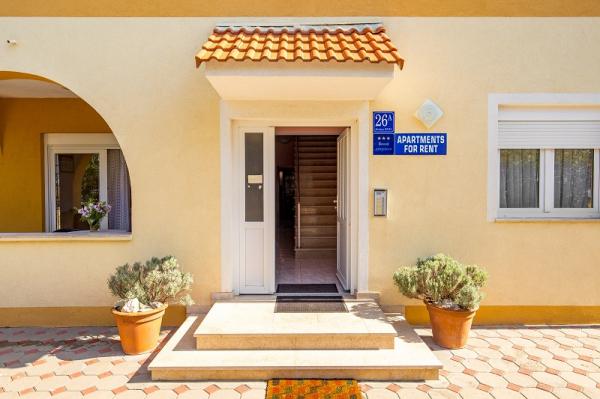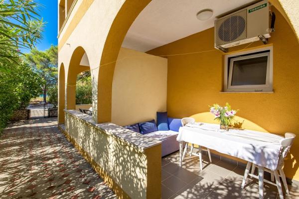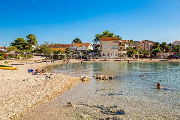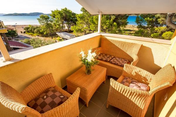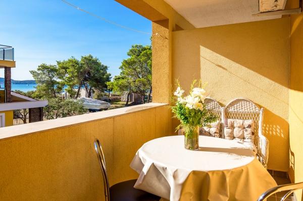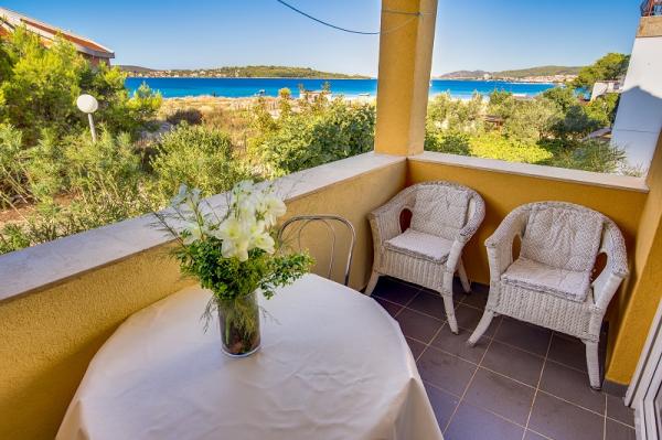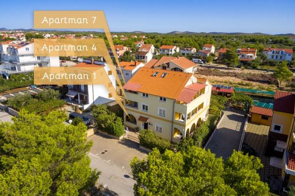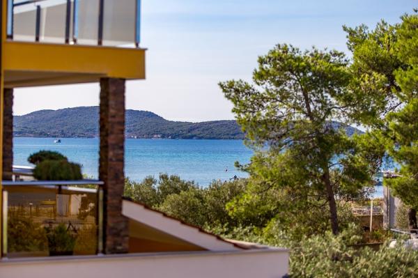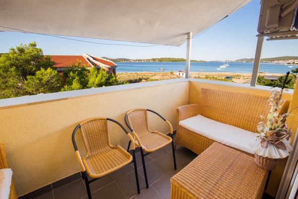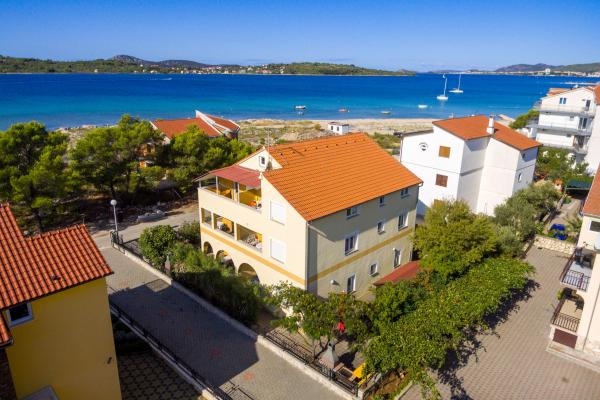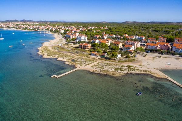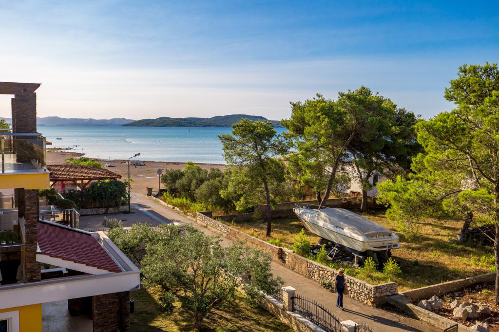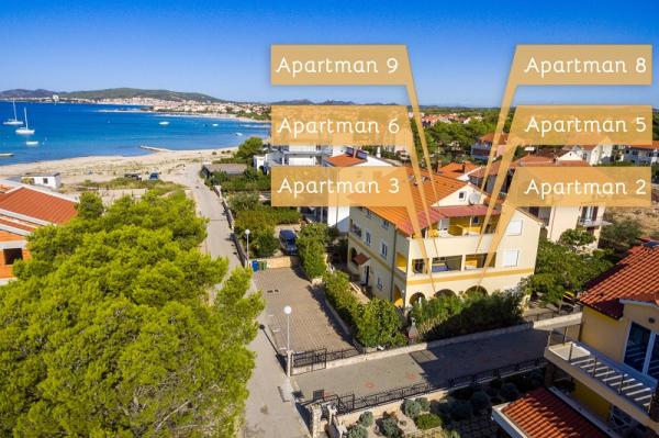 Apartments in Vodice (Srima) three stars, first row to the sea (50m to sandy beach), two and three bedroom apartments, fully furnished (air conditioning, tv, internet WiFi). Each apartment has a kitchen, a bathroom and a balcony with a sea view. There is also an outdoor grill. .