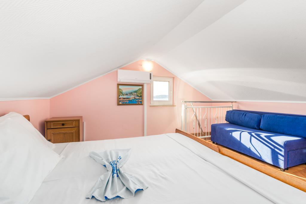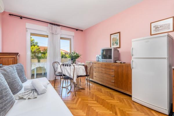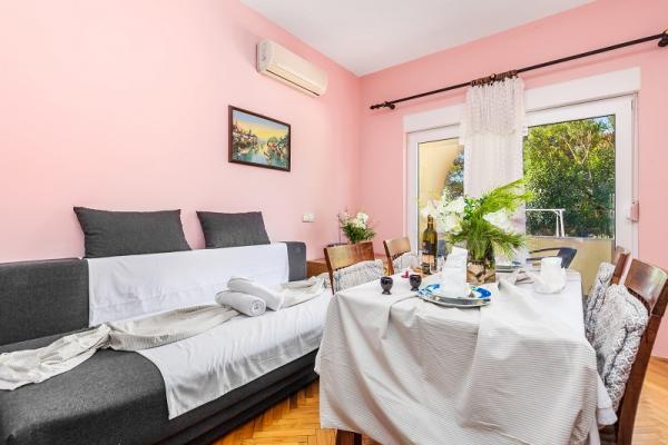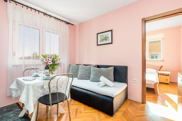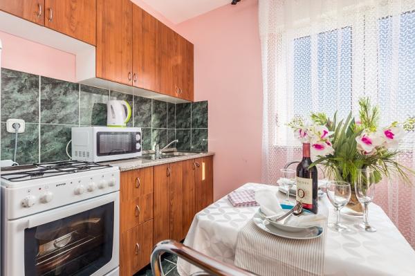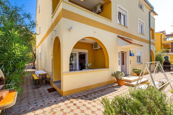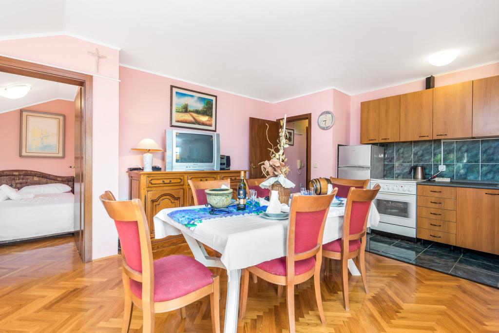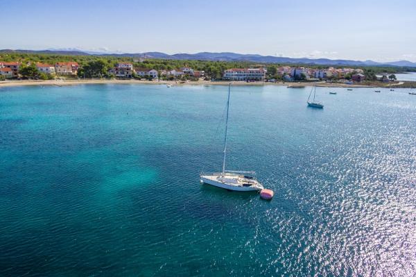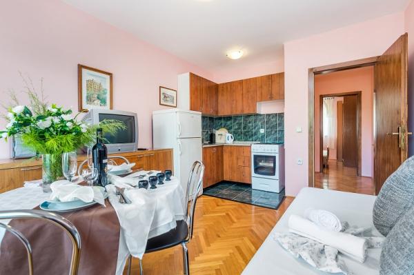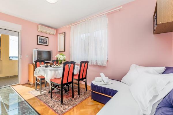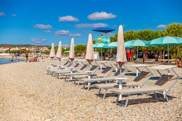 Apartments in Vodice (Srima) three stars, first row to the sea (50m to sandy beach), two and three bedroom apartments, fully furnished (air conditioning, tv, internet WiFi). Each apartment has a kitchen, a bathroom and a balcony with a sea view. There is also an outdoor grill. .