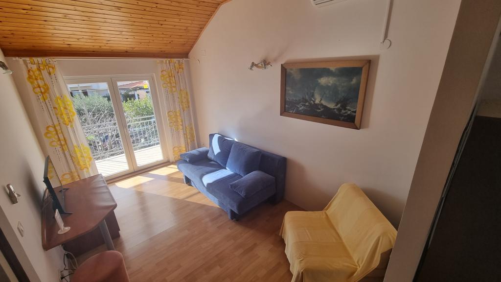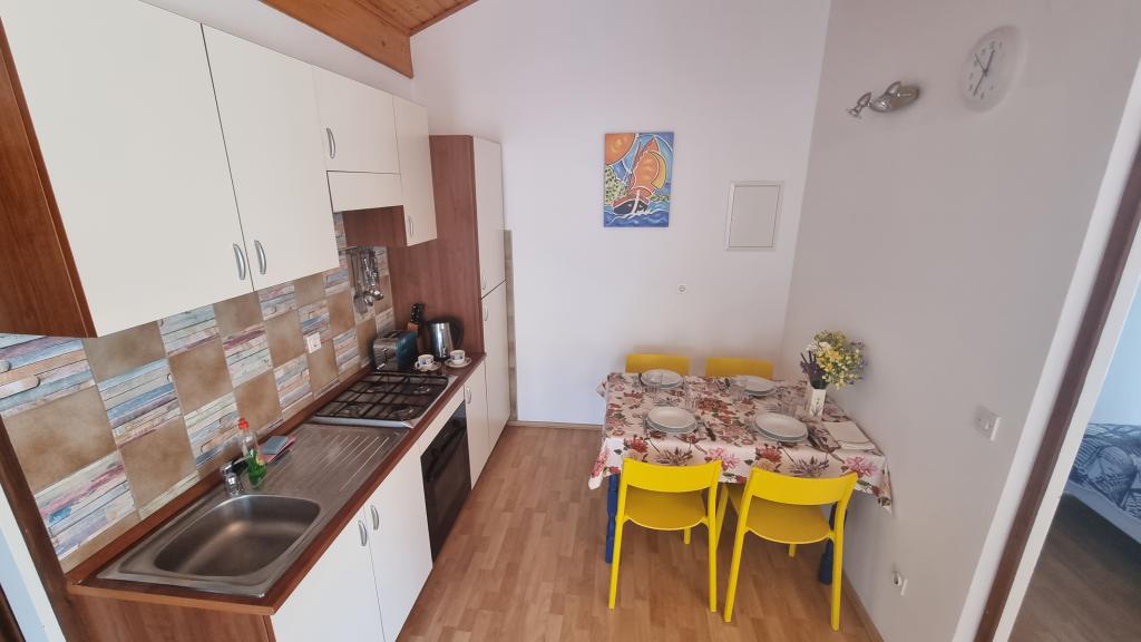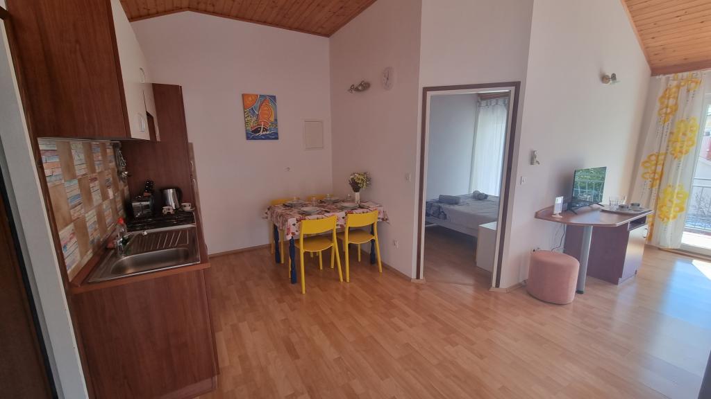 The apartments are located in the suburb of Vodice - Srima. We offer 3 apartments. On the first floor of our house there are apartments 2 2, and on the ground floor there is a studio apartment 2 1. All apartments are air-conditioned. Each apartment has a parking space in the shade. In the garden you have a garden with a barbecue and a children's playground. The house is located on a side street so it offers peace and privacy. The beach is 200 m away and the shop is 150 m away. The town center (Srime) is 500 m away, and the center of Vodice is about 2 km or a 20-minute easy walk.
