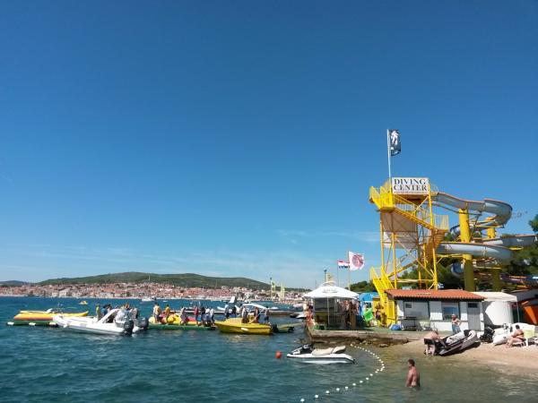 Residential tax is included in price.The location of the apartment is great! 60 meters to the beach. Unfortunately dogs were not allowed on the beach, so we are forced to go somewhere else every day. Restaurants and bakery are nearby, you walk about 200 m The apartment is very clean and the landlord and his family received us very friendly! The view from the balcony is beautiful. There is also a water withdrawal point outside in the parking lot, very advantageous!