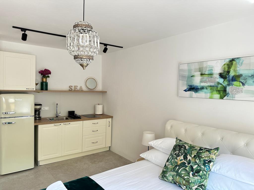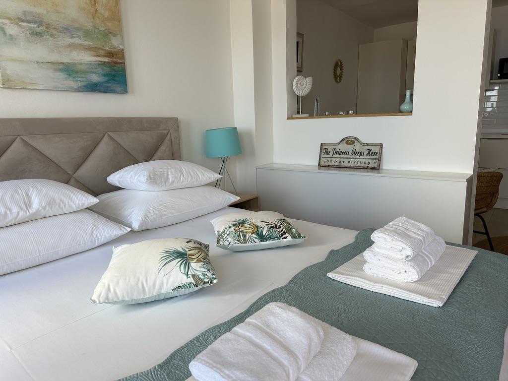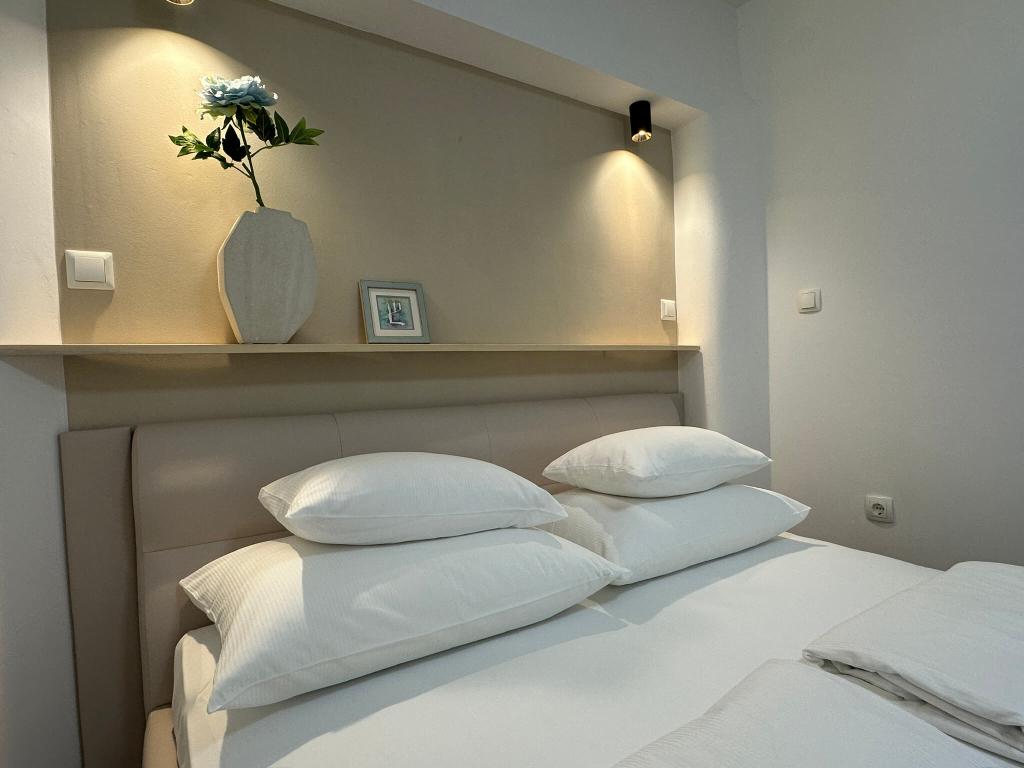 Surrounded with greenery, Sunshine Residence is set in Stara Baška, 150m from the sea. The house is located in the heart of the village and just steps from the beach. Choose between several apartments which can accommodate 2-5 people each with a private sea view balcony or terrace. You will enjoy wi-fi, access to a barbecue grill and all it’s accessories, as well as towels and linens. Whether you choose the apartments of 25m2 or the apartments of 50-60m2 you will be rewarded with a terrace or balcony where you can enjoy long summer evenings with your friends or family. There is a parking stall provided for each apartment for your convenience. Enjoy the relaxing atmosphere and the peace and quiet or go for a hike or swim. We look forward to hosting your time away to make it all you can dream of.