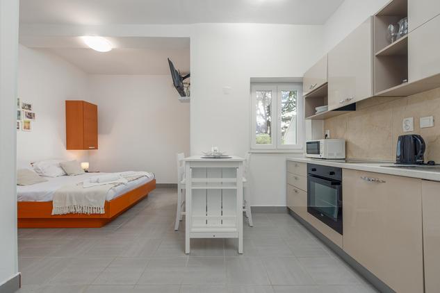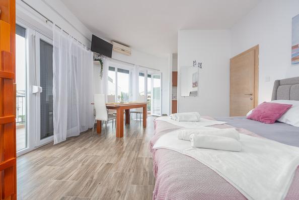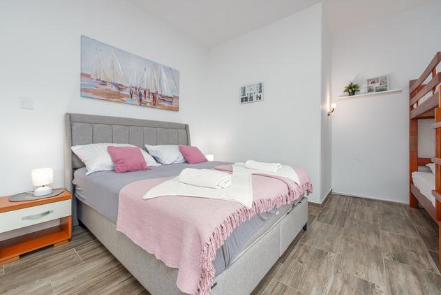 Toni Apartments are located in Stara Novalja on the island of Pag. The facility is located next to the beach and has a restaurant on the ground floor. It is also close, 5 minutes walk and a large public beach with all water sports and bar. In front of the house there is a large car park and garden with barbecue and offer the possibility of renting bicycles. Novalja is a small place but if you are looking for fun only 5 kilometers away is the famous beach Zrće with big nightclubs, and 2.5 kilometers Novalja.