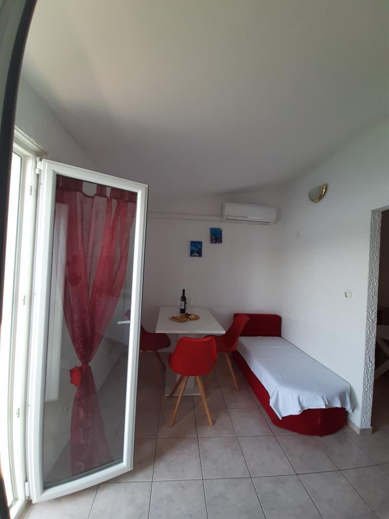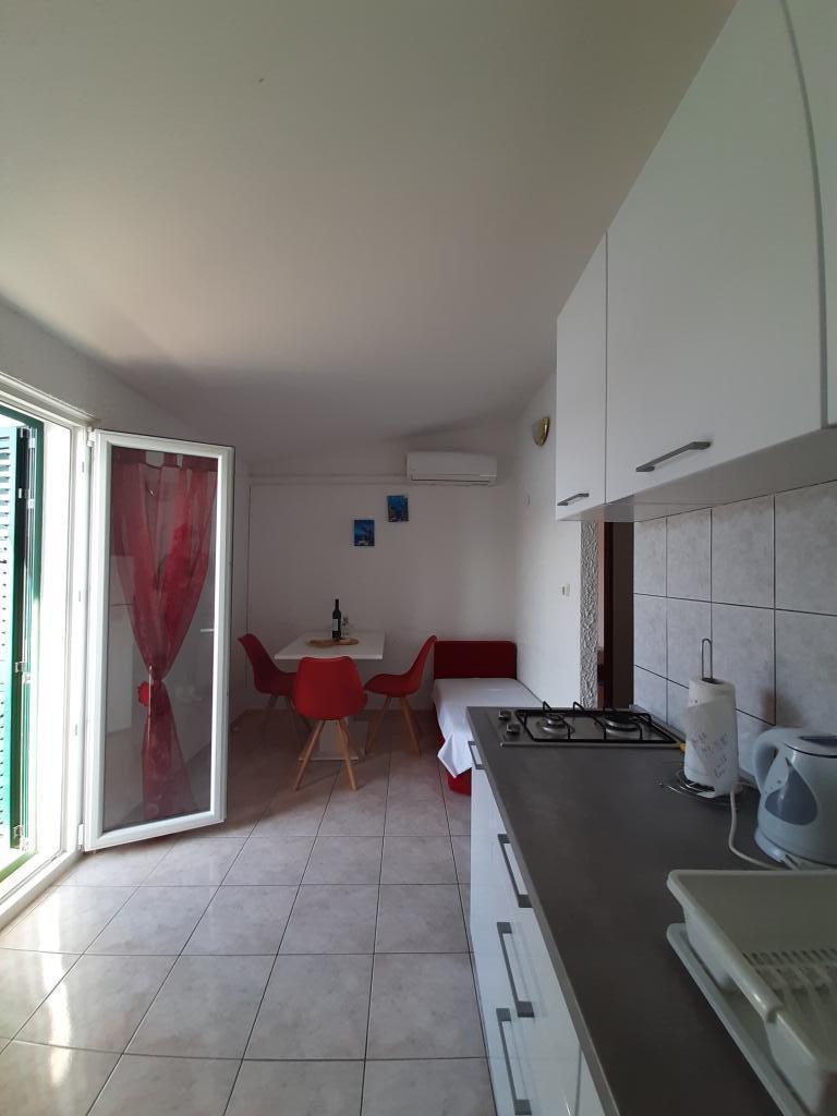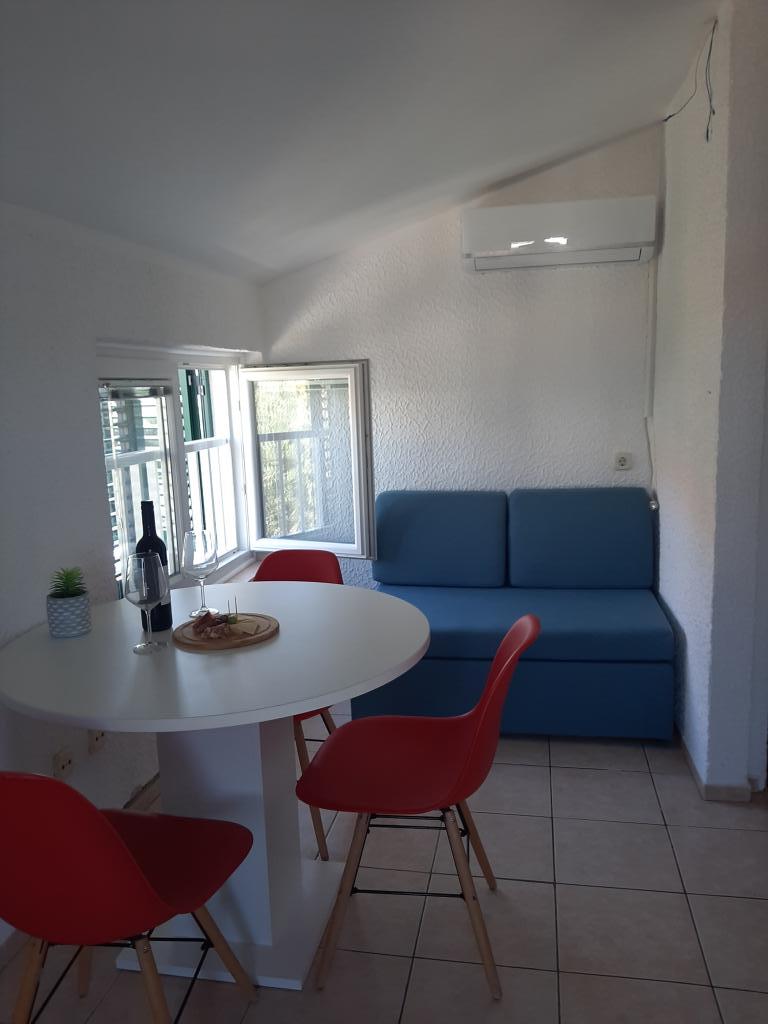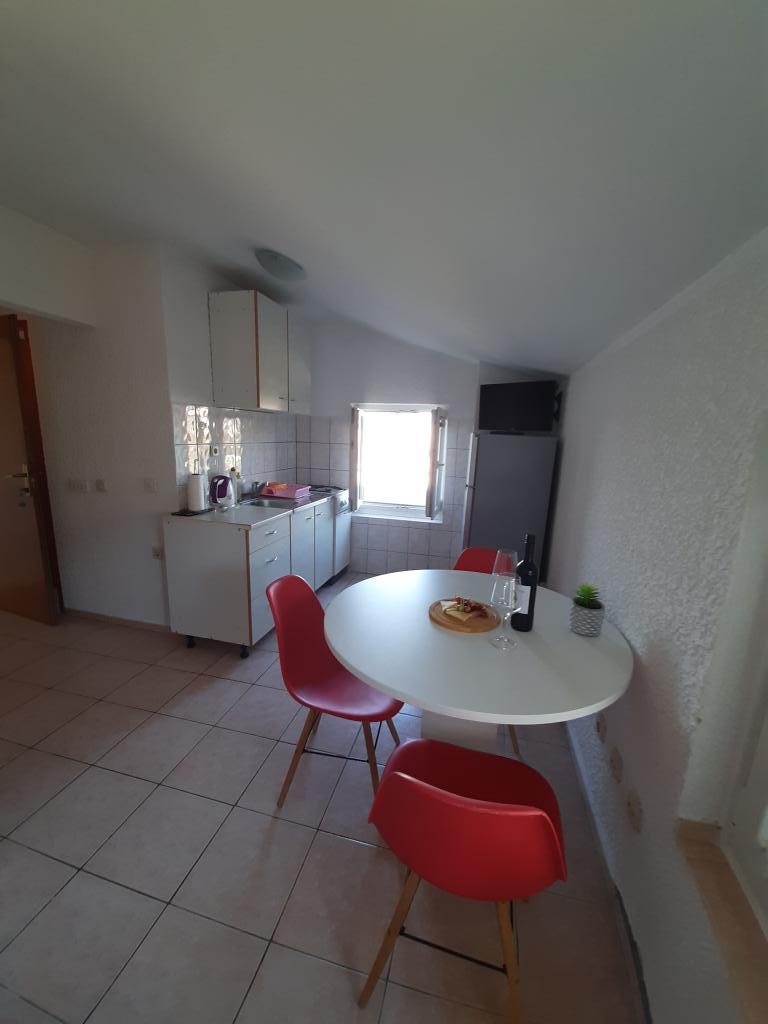 Apartments Zlata are family accommodation located 5m from the sea. Three apartments are for rent, located on the second floor of the family house, the accommodation has its own private parking. The apartments have a shared hallway, consist of a kitchen and dining room, bathroom and bedroom with a double bed and an extra bed. The apartments have their own balconies, in front of the family house by the sea there is a social area that can be used by all guests of the facility, and it includes tables, chairs, a barbecue, umbrellas, deck chairs and a shower on the beach. Possibility of mooring for a small boat. An advance payment is required as confirmation of the reservation. Tourist tax is included in the price. For all inquiries and dates, we are available via e-mail or telephone. We look forward to your arrival!