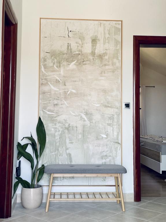 Two-bedroom apartment with terrace on the second floor of a family house. Apartment Nerium (Latin name for oleander) is situated in the picturesque village of Dol, in the heart of the island of Hvar. It stands out for its comfort, peaceful surroundings away from the crowds of tourists and a beautiful view of nature and the village. The location in the center of the island makes it perfect to visit the surrounding towns and sights. The distance from Stari Grad is a few minutes by car, Hvar 20 minutes, Jelsa 10 minutes. The nearest beaches are 5-10 minutes away by car.