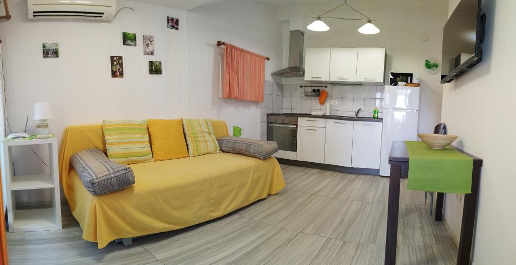 We just got back from vacation and I want to share with you my impressions positively. It is equipped with more than many other apartments in which I bila.Pored air conditioning, internet, TV, oven, dishes, bedding, towels, comfortable beds, suite has a toaster, iron, fen..Sve at kuce..Potpuno is new and extremely clean with a beautiful terrace. The beach is 100m and is suitable for families with children and the younger generation, because that is a gritty part. The hosts are very friendly helpful. Upon arrival at the apartment waiting for us to dinner in the fridge, wine and fruit on the table. Ferry port is near and you can come and walk. As for me personally, I will be happy and there next summer. We highly recommend this apartment, I do not have any objections!