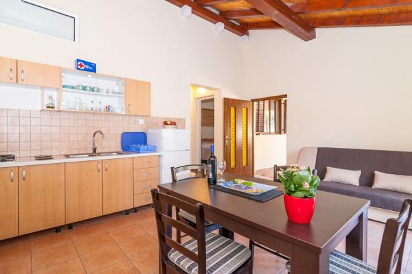 If you seek not only for a holiday, but also for a break from modern tehnologies and too busy modern life, we can offer you a place for a full rest for your body and soul. These apartments are located in the peaceful Borova bay, where in the vicinity you can find only several houses (first neighbour is 100m away). The house is located about 50 m from the sea. In the house we offer two apartments. The smaller one is for 2 2 persons, while the bigger one is for 4 1 persons.