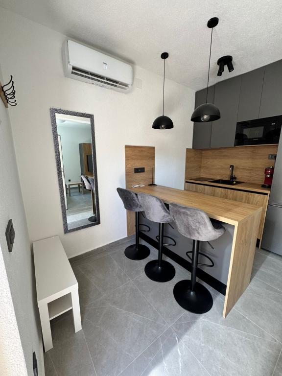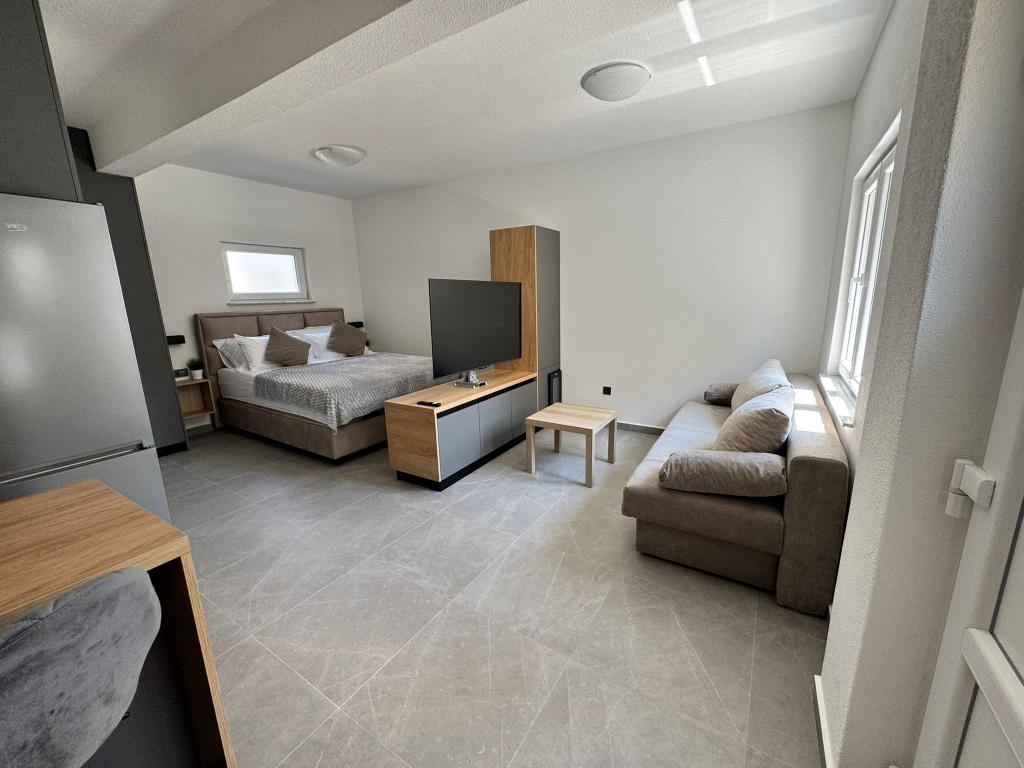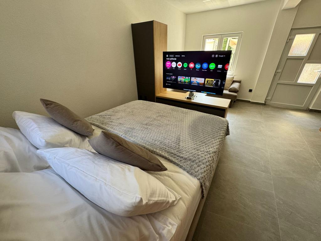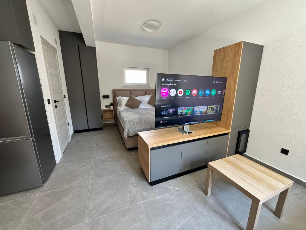 The newly furnished and completely renovated studio apartment is located in a separate building in a quiet part of Starigrad, just 1 km from the entrance to the Paklenica National Park and 500 m from the sea, making it an ideal choice for lovers of the sea and nature. The apartment is designed for 3 people and is equipped with everything you need for a pleasant and relaxing holiday: air conditioning, Wi-Fi, Google TV (Netflix and MaxTV), a fully equipped kitchen (dishwasher, microwave grill, coffee maker...), a modern bathroom (washing machine) and a quality bed. Guests also have access to a pleasant terrace with a gazebo and a barbecue in the yard. Near the apartment there are Tommy, restaurants, a pharmacy, a gas station, while the sea is reachable on foot in 5 minutes or by car (1 min). Parking is provided next to the building, and the hosts are always available to help.
