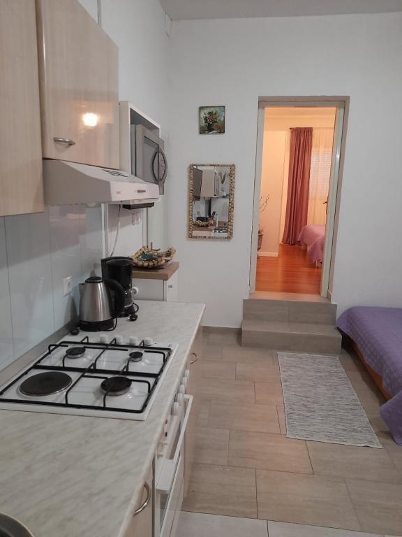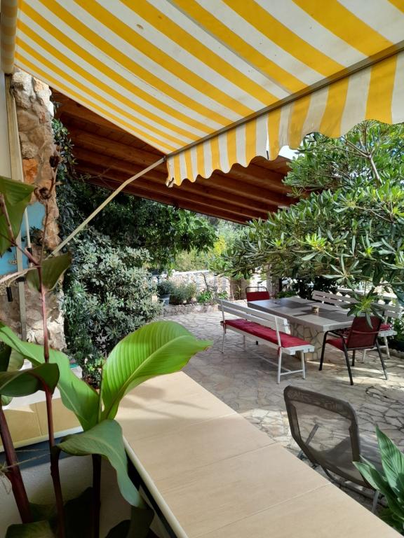 Self-detached house with 5 residential areas in a quiet part of Starigrad. Close to the sea and beaches, restaurants, playgrounds, center. Close to the National Park. Within the facility there is a small tavern and a barbecue for free use. Each apartment has its own terrace (balcony overlooking the sea) and two large tables in the yard.