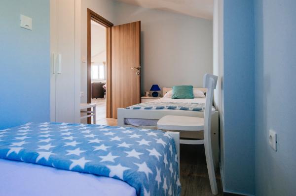 modernly equipped apartments with balcony, two bedrooms and living room with kitchen, sea view in a quiet part of Starigrad. 60 m from the sea and 1.5 km from the National Park. Distance from the center 500 m. Parking provided in the yard.