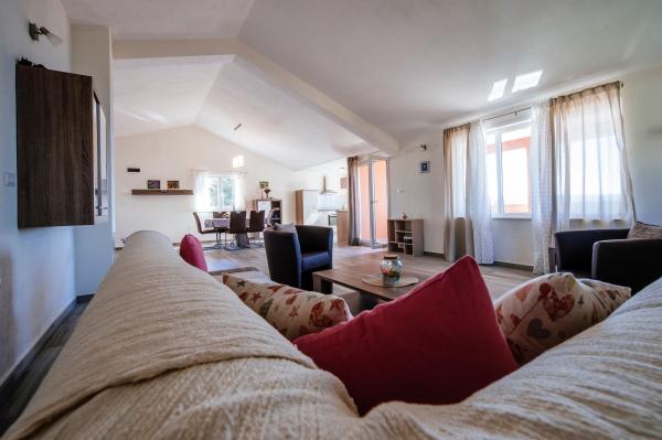 Quiet, beautiful surroundings. Close to an uncrowded beach. Clean, nicely furnished apartments. Very nice and hospitable hosts. I really recommend !!!