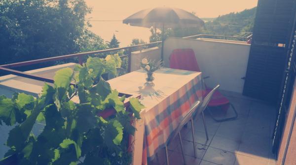 We spent 3 lovely weeks at the Jovic 'family. Every morning breakfast on the terrasse with a wonderful view of the sea. In the evening the great view indescribably beautiful. The apartment was clean. A small tip of mine still: the bathroom through the many use of the holidaymakers needs to be renewed, or a shower cubicle. The landlords are very friendly and helpful. We were very well received with drinks and with snacks. They brought us regularly new sheets, baked a delicious cheesecake from the day we still dream. The great farewell dinner with the family was very overwhelming. We could relax very much. We already know that we will come again. Greetings from Germany
