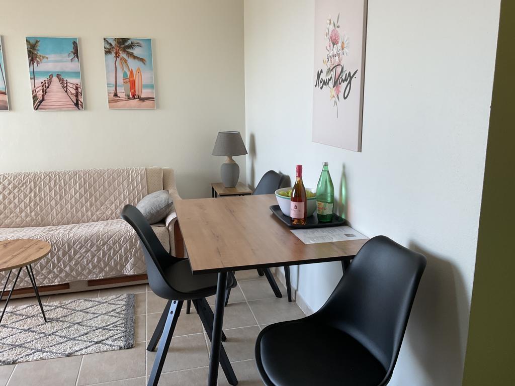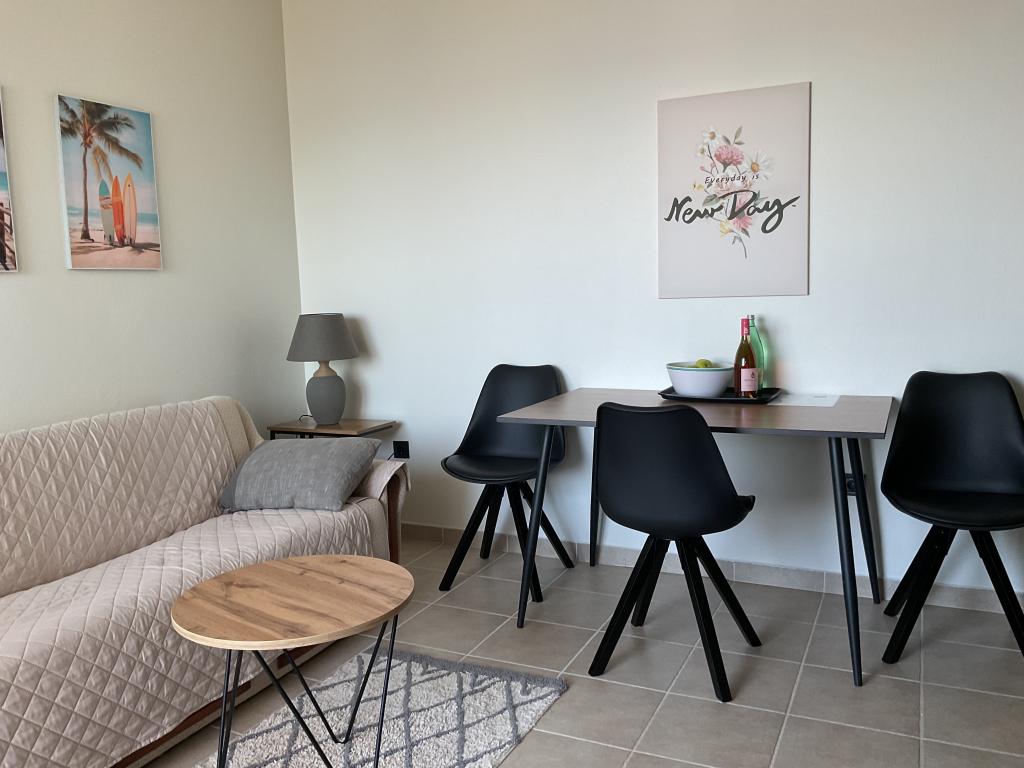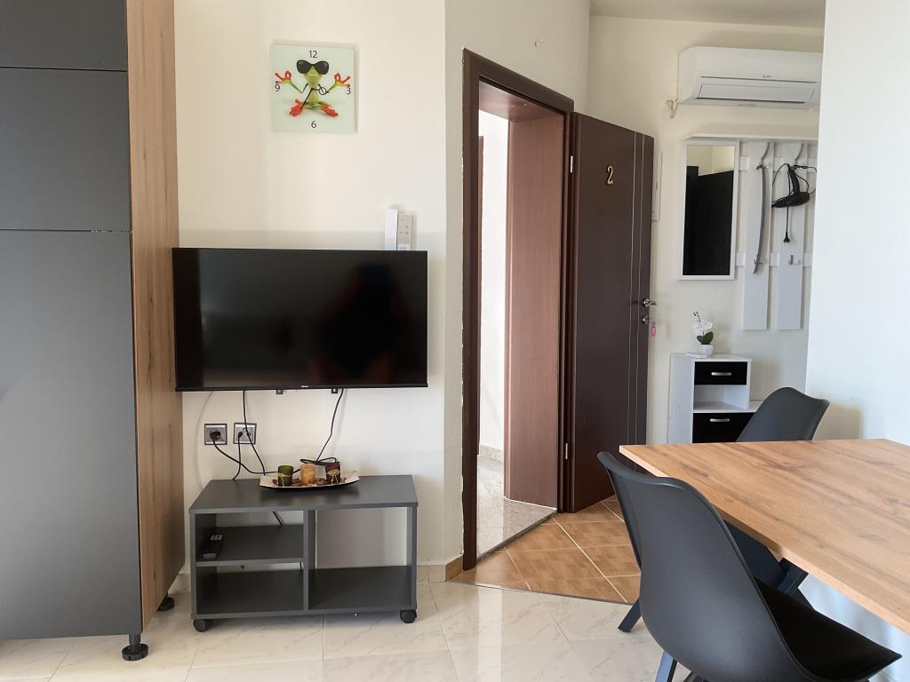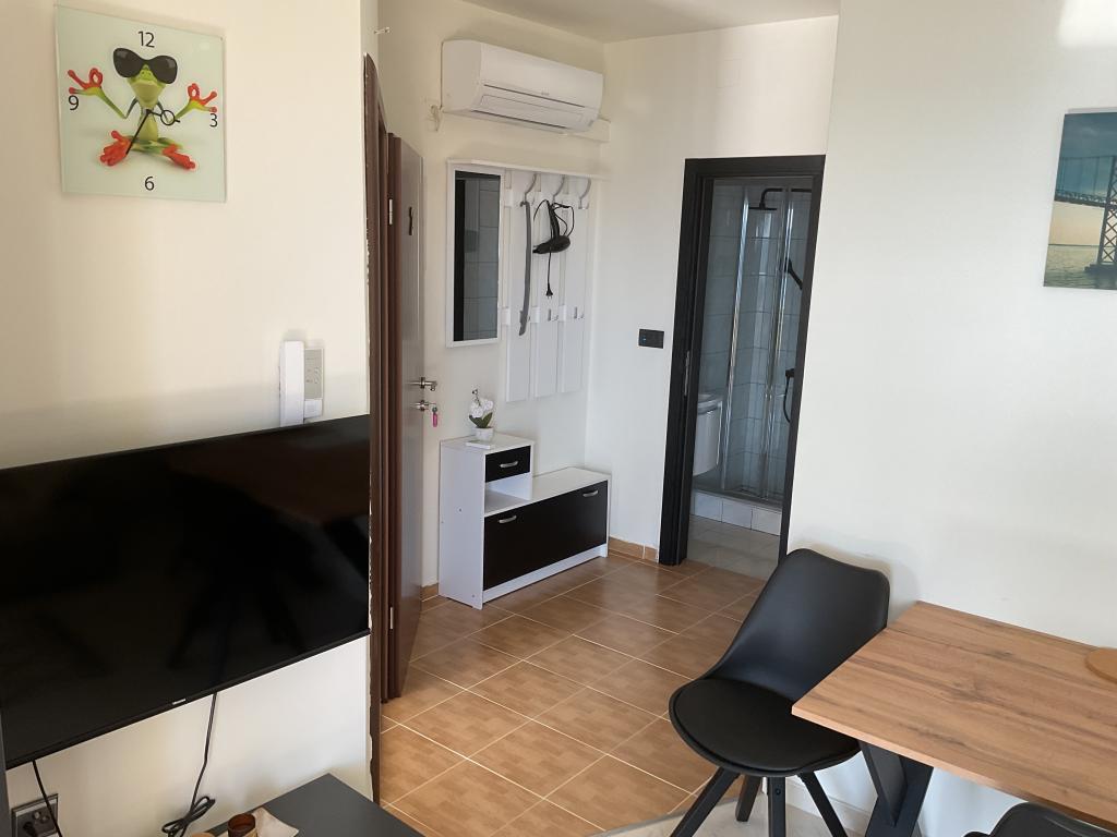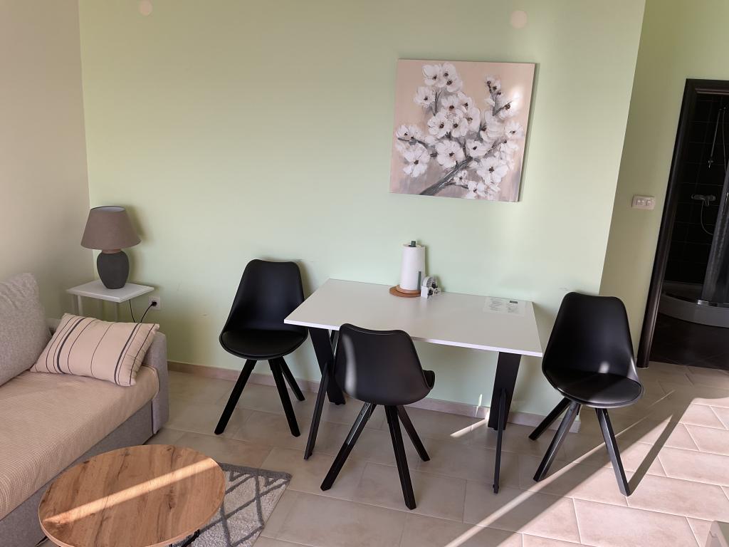 Nice, clean apartment with an outdoor pool. The apartment has a terrace, a well-equipped kitchen, a living room with a sofa and a TV, and a bedroom with a comfortable bed and a spacious wardrobe. The hosts are very friendly and communicative. They help with advice on what is worth seeing in the town, where are the good restaurants, and the best beaches. Affordable price for the service they provide.
