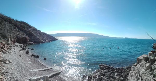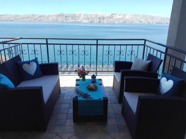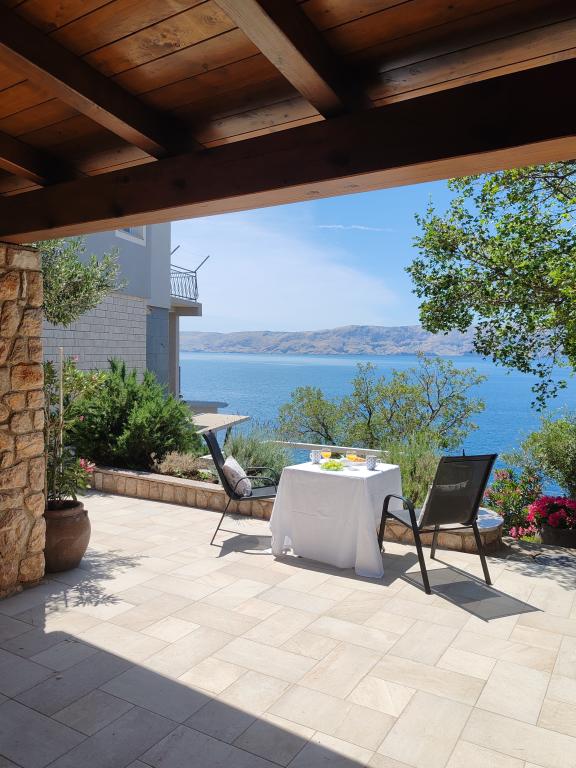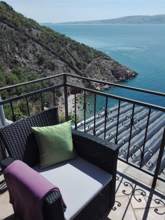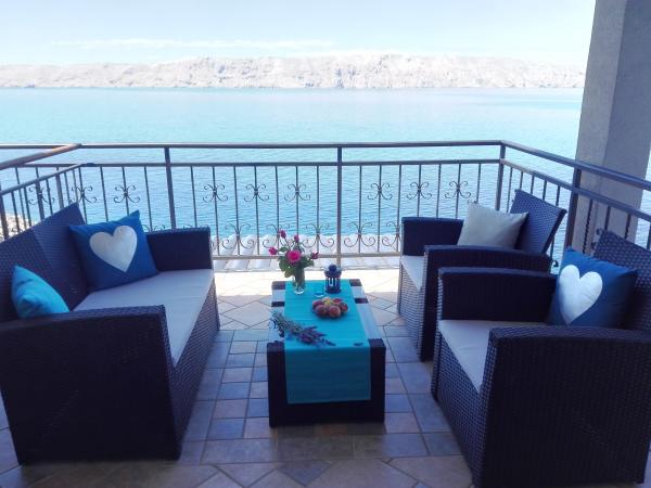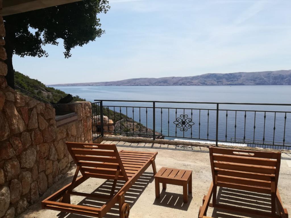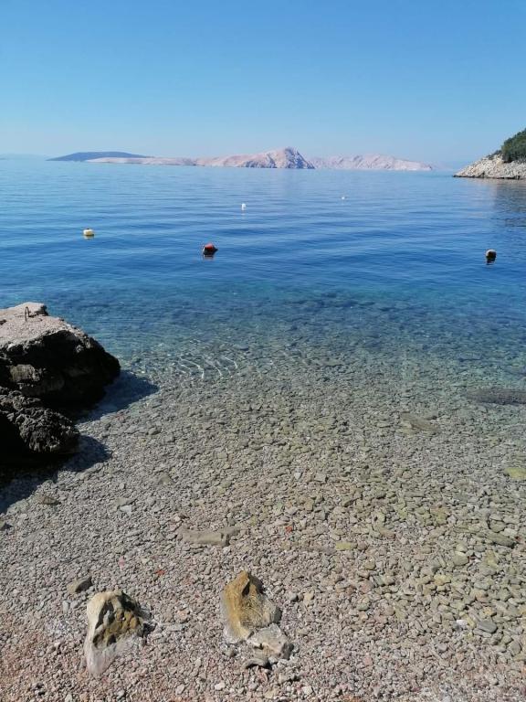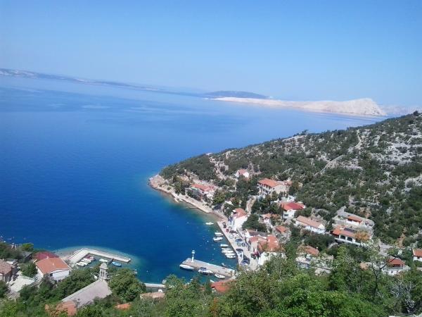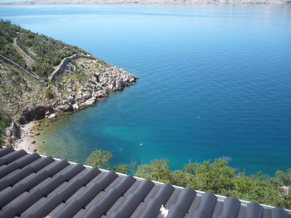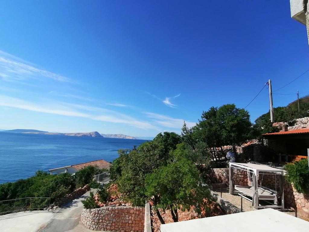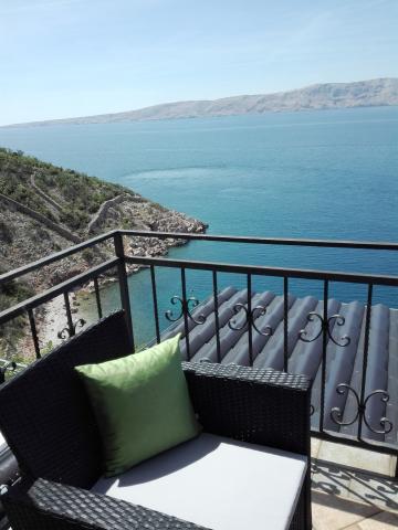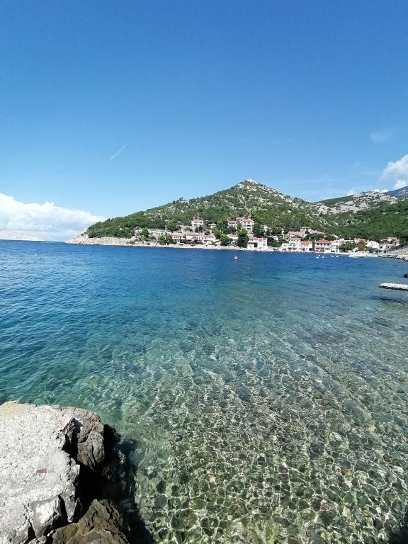 Very nice owners, clean and cozy apartment with a spacious balcony overlooking the sea. The apartment has a perfect outdoor kitchen with a place to sit in the cool and a wonderful relaxing swing. The path to the beach below the apartment is partly by stairs, partly by a stone path. We had almost a private beach. The water is cooler in these places, but clear. There are other, warmer beaches within walking distance, or just a short drive/swim from the shore :-) There is no shop in the place, but a delivery van with pastries arrives every other day, twice a week FamilyFrost. Larger shopping approx. 20 km SvetiJuraj or Senj. A totally relaxing holiday for us!