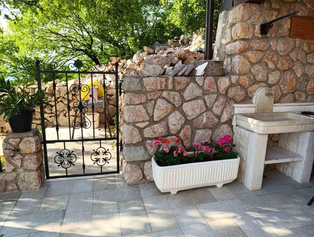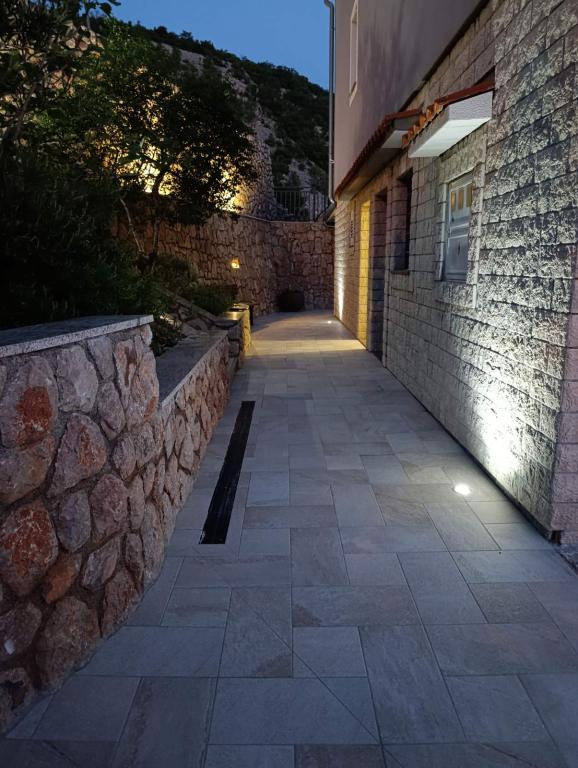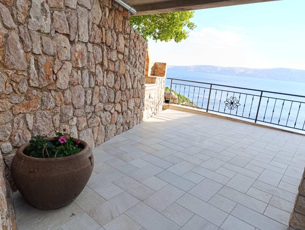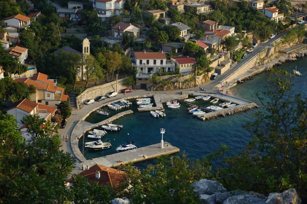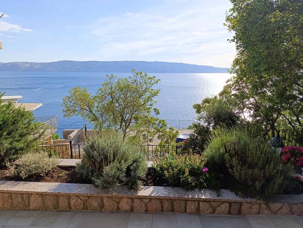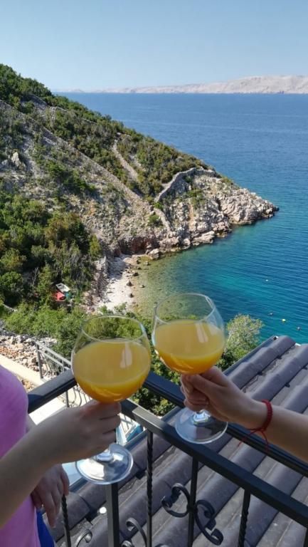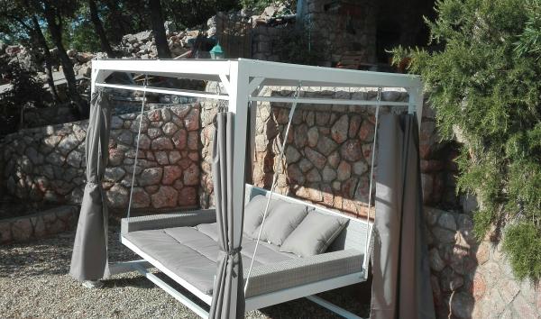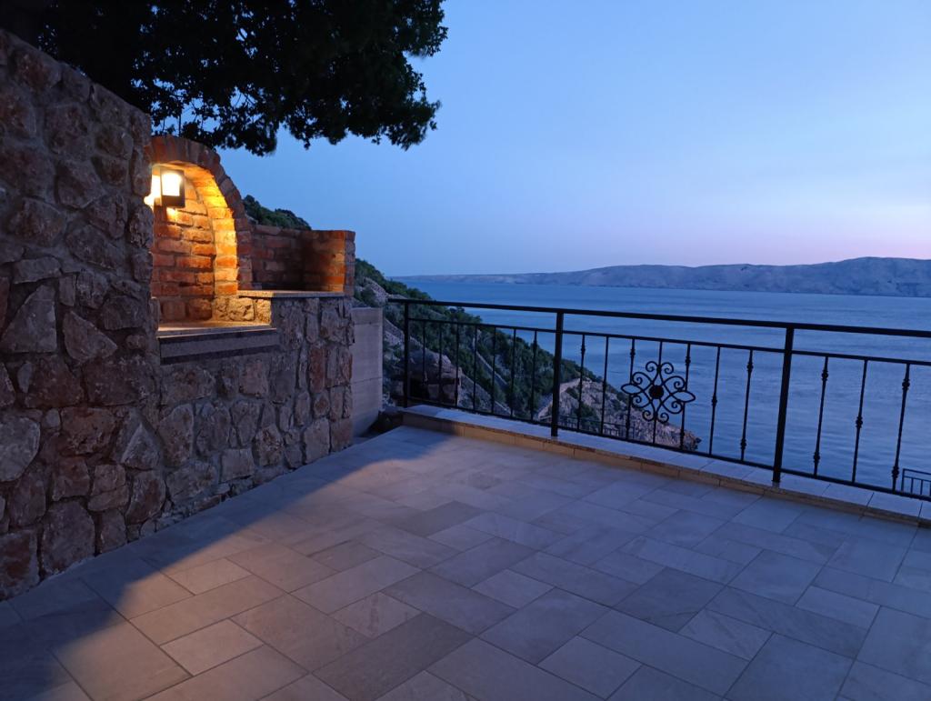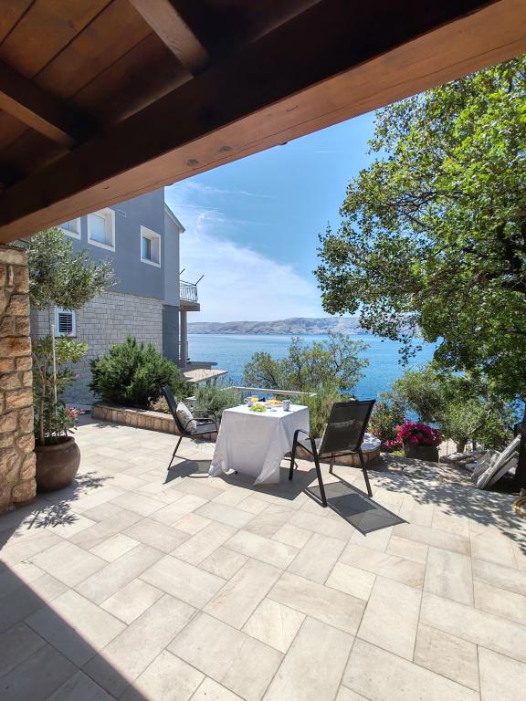 Very nice owners, clean and cozy apartment with a spacious balcony overlooking the sea. The apartment has a perfect outdoor kitchen with a place to sit in the cool and a wonderful relaxing swing. The path to the beach below the apartment is partly by stairs, partly by a stone path. We had almost a private beach. The water is cooler in these places, but clear. There are other, warmer beaches within walking distance, or just a short drive/swim from the shore :-) There is no shop in the place, but a delivery van with pastries arrives every other day, twice a week FamilyFrost. Larger shopping approx. 20 km SvetiJuraj or Senj. A totally relaxing holiday for us!