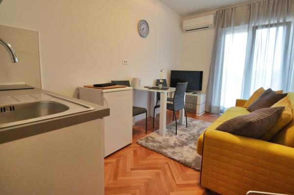 Completely and modernly equipped apartments and rooms in a family house with secured parking and a large garden in the center of Stobreč, 30 m away from the sea and 6 km from the center of Split and Diocletian's palace. All apartments and rooms are air-conditioned and have ceiling fans and TVs. Tennis courts are 300m away and golf courses 400m.