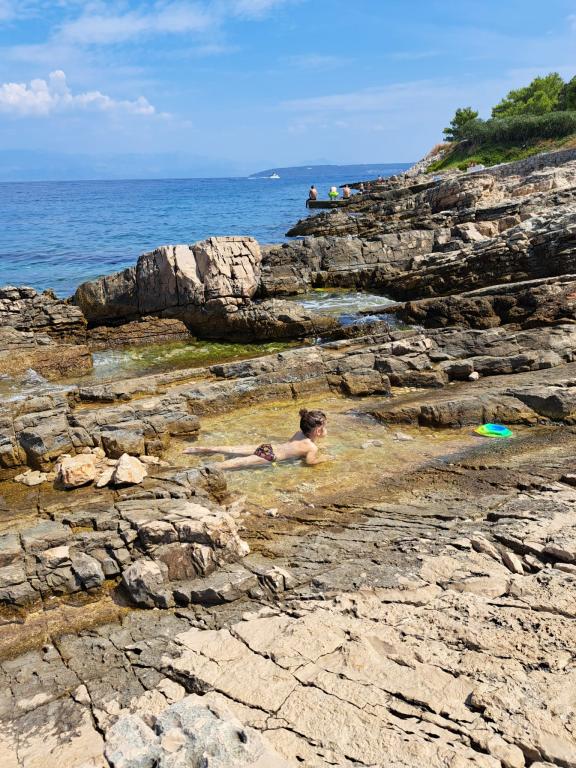A wonderful place to have a nicer island. The beach in front of the house with crystal clear water. Every stone in the sea to see the beautiful large terrace. The apartment is nicely furnished, air-conditioned, well-equipped, with a large fridge and large freezer. Everything is clean and tidy. The view from the terrace is wonderful. The hosts are very friendly, helpful and friendly. The most I like what suvotvoreni and pets. We come for the third year and we definitely recommend.