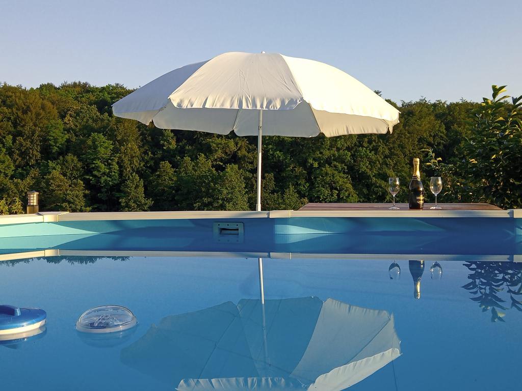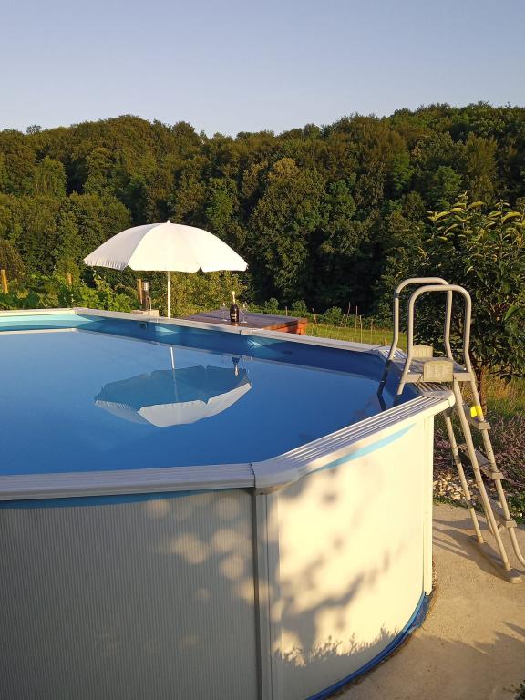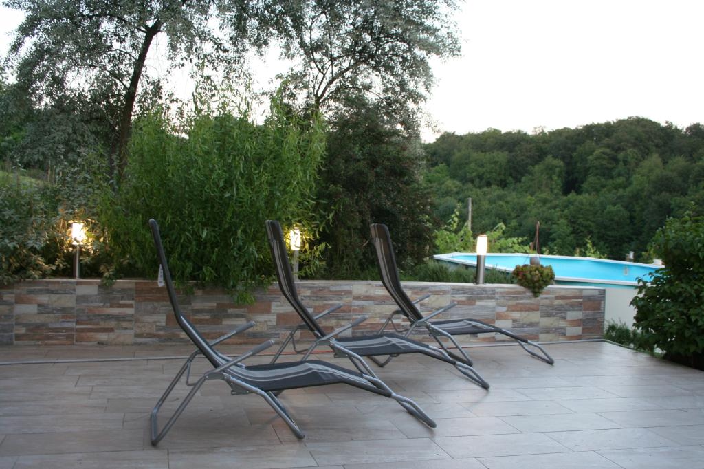 In an oasis of peace and quiet and 100 percent greenery, with the scent of plants, in Grabrovnik 139, Apartment Arena is located on the first floor of a family house with 2 bedrooms x 2, living room. room and bathroom. The external southern terrace of 60 m2 belongs to him for use. with furniture for sitting, sunbathing, grilling, and there is also a prefabricated pool 610x360x120 cm. Bathing, swimming or sunbathing in the pool, you have a table with an umbrella next to the pool. The view towards the meadow and the forest will catch you deer, spikes of grass in many shades of green. There is also a pitfire in the garden, get together and light a fire and roast sausages or some of your delicacies on a stick. For outdoor activities, we have designed for you a summer kitchen with a sink and hot water, a washing machine, and appliances that will be used for your outdoor stay or food preparation. Nearby are the spas of St. Martin, Jelena farm, Mađerka lookout, Scottish cattle farm, outdoor sports and recreation center, 25th winery with top wines, Zmajev vrt, and the offer of vegetables in the domestic OP