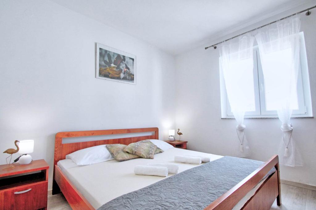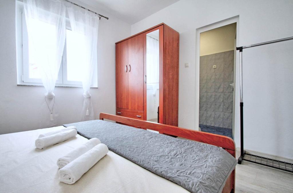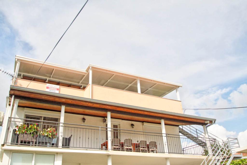 Fully equipped apartment on the 1st floor for 6+2 people. Separate entrance. Large, separate and covered terrace with a direct view of the sea. The apartment has 3 bedrooms, 2 toilets, one of which is connected to the bedroom. The beach is 40 m from the apartment, it has natural shade and a sandy volleyball court. The center is 300 m away, and everything else is within 100 m.