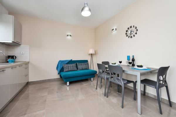 Completely new and well equipped apartments very close to the beach. Pictures in the presentation suites are real. Not only that, the apartment is air conditioned, air-conditioning even in every room. Everything needed to stay in the apartment. Owners are very hospitable and accommodating.