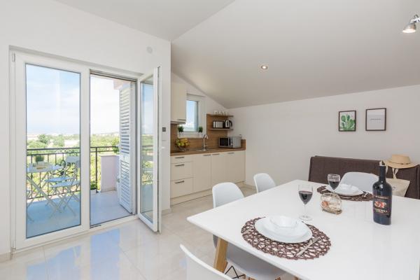 Feel Good Apartments are located in a family house in the peaceful part of Sukosan, a small town located 7 km south of Zadar. Just 100 meters from the sea and two minutes easy walk to the beach. Guests have 5 spacious open plan (3x4 2, 1 x 6 2 and 1x2 1) with sea views and spacious private terraces. The apartments are fully and modernly furnished and equipped with air conditioning (each room with separate control), Wi-Fi internet access, LED SAT / TV and functional and modern kitchens. Parking is provided for each apartment. The summer terrace in the shade of the olive provides relaxing moments for socializing and grilling. If you are looking for a comfortable accommodation and a quiet dream while enjoying the cultural and nightlife of Sukosan and Zadar, book accommodation in our apartments. We are looking forward to your arrival. .