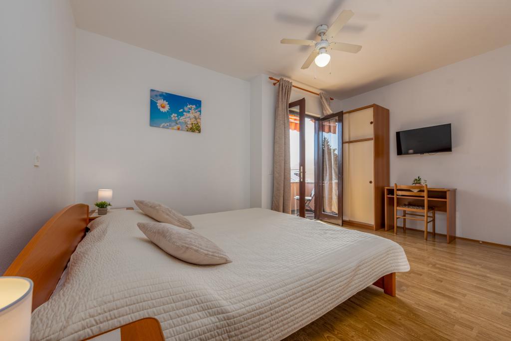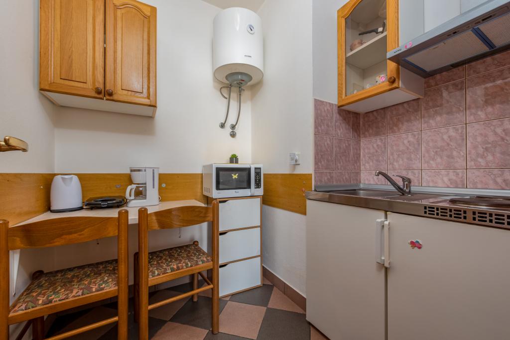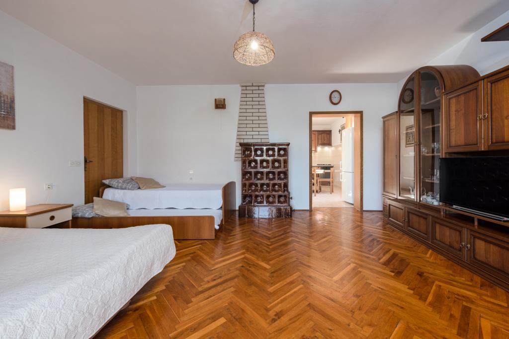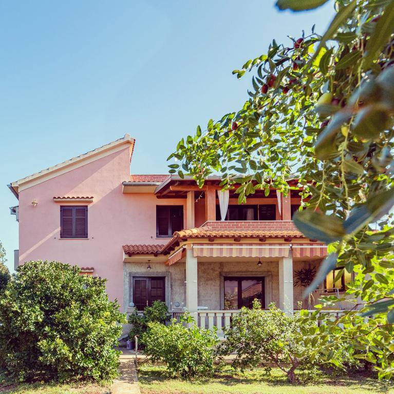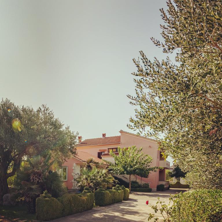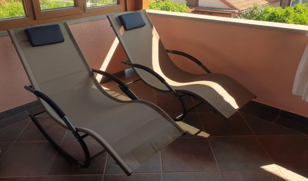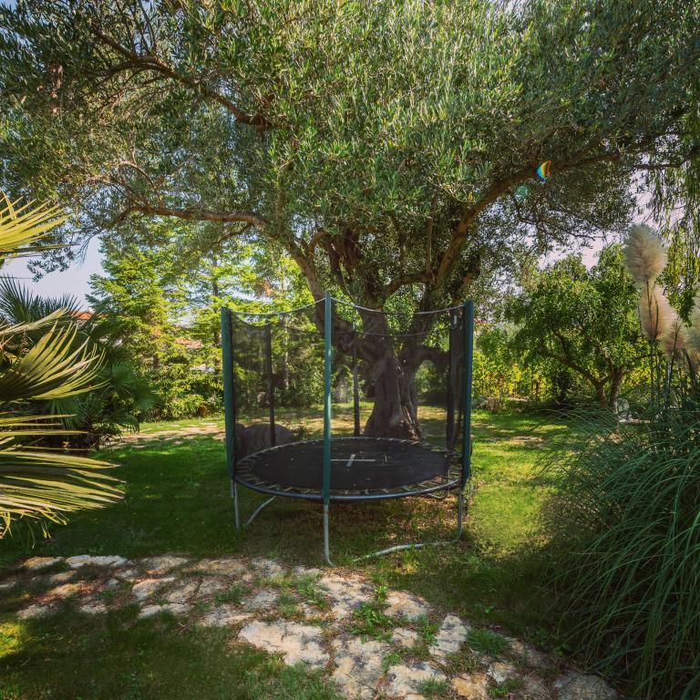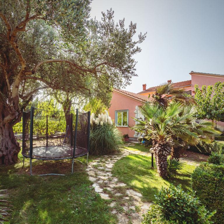 So I would recommend this apartment with all ten of us. There were several families staying there, so I can rate all the rooms. The apartments are cozy and clean. There is air conditioning in each apartment. The kitchenette has everything you need. Pots, pans, glasses, just everything. The owner changed the towels for us, which I consider a big plus. As for the exterior, it was great for us, especially for our children. Swing, trampoline, sitting in the garden, greenery and a large yard. And as for the owner, she is an amazing, kind, helpful and always smiling woman. I have never met such a person in an apartment. I can only recommend her, it was great for us and I believe that we will return there again.