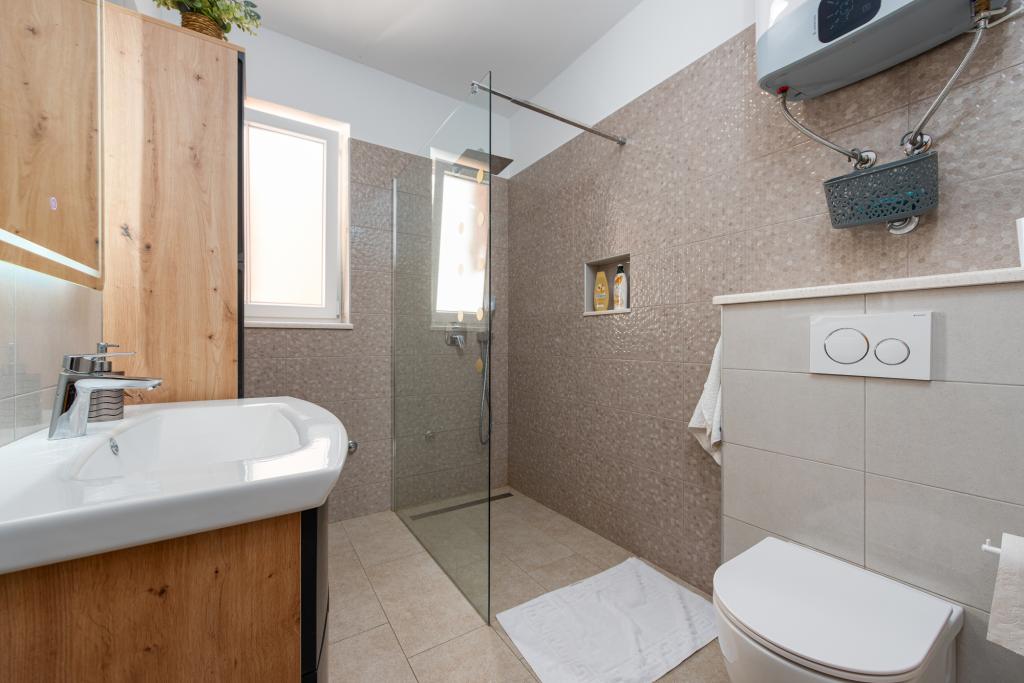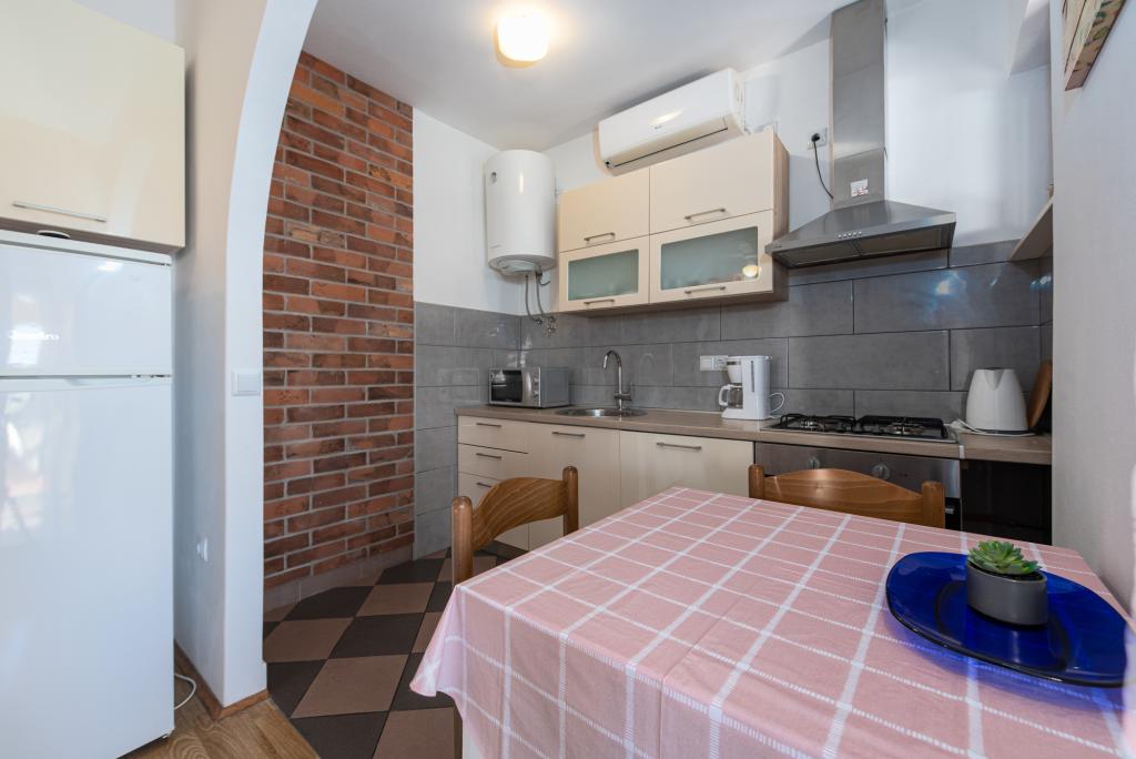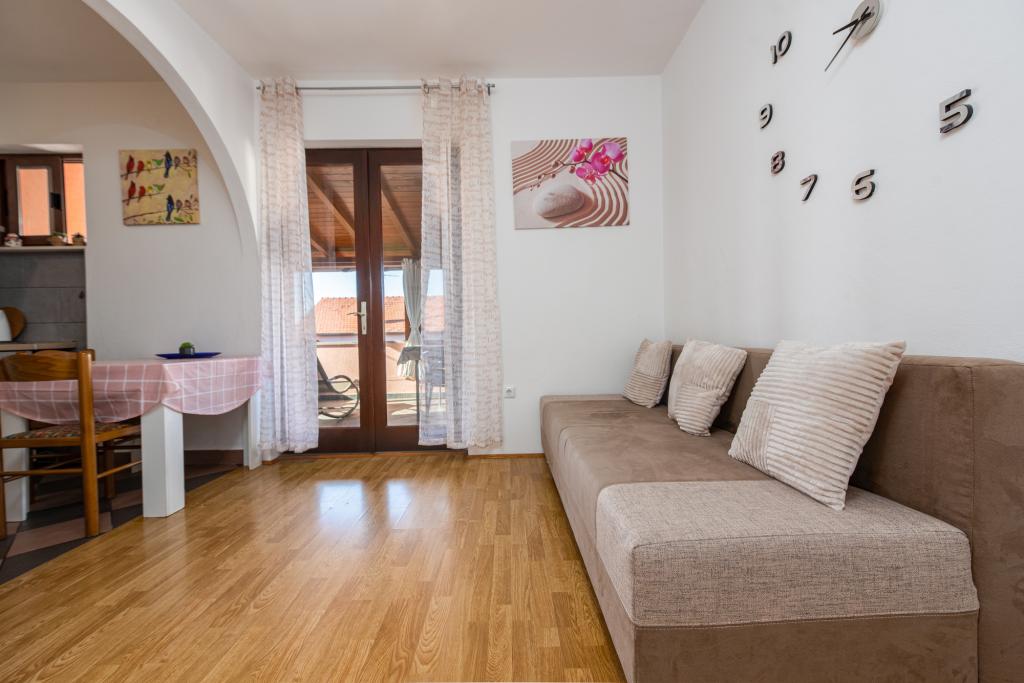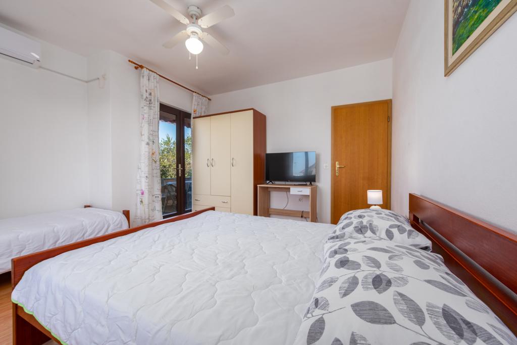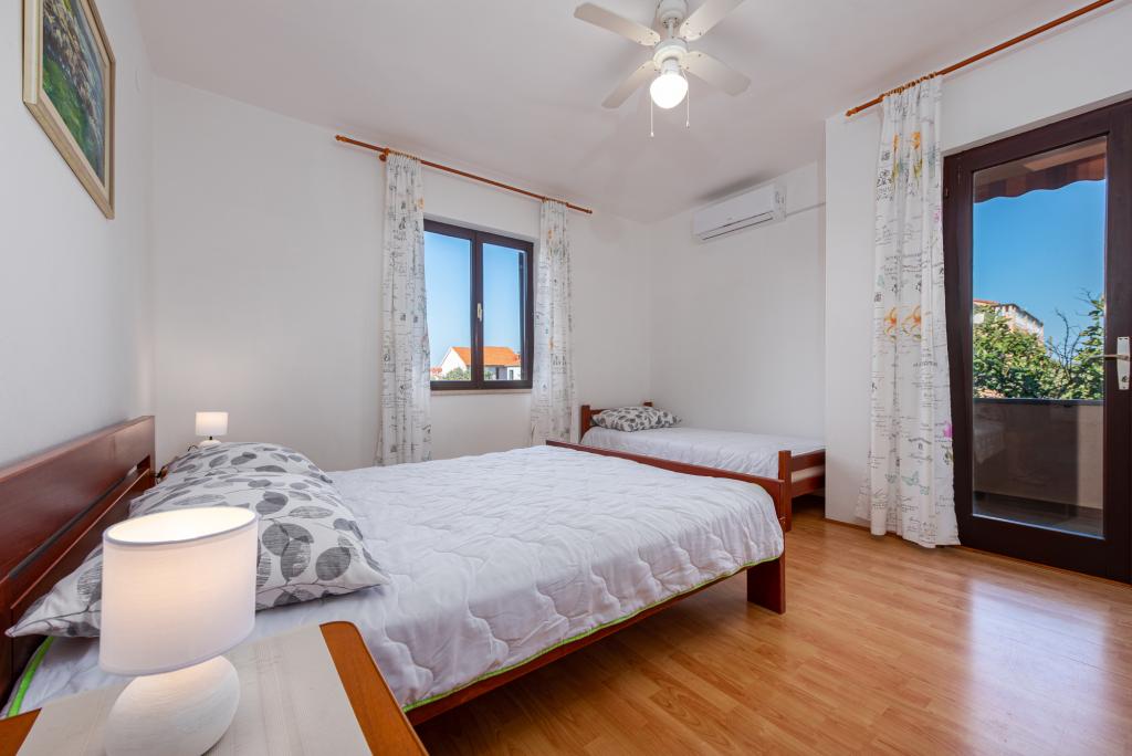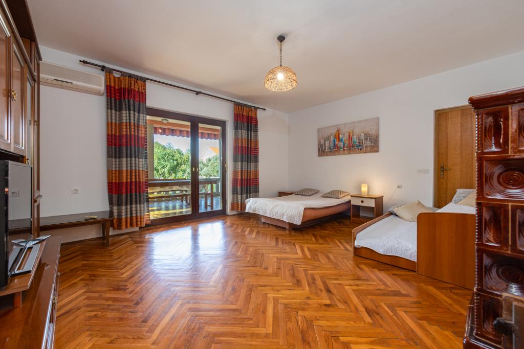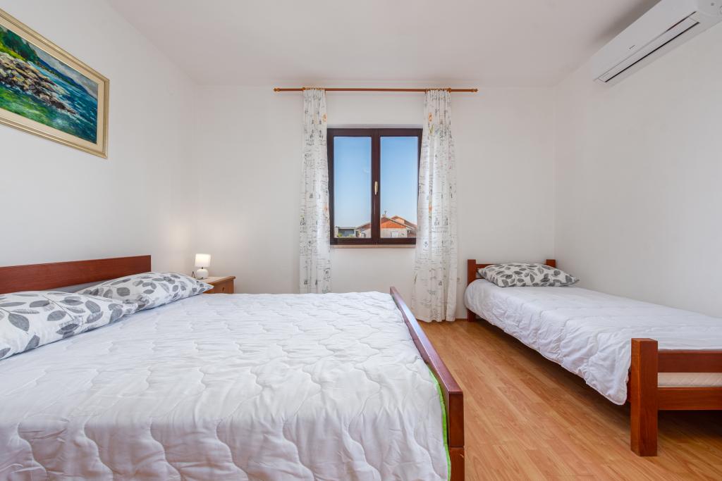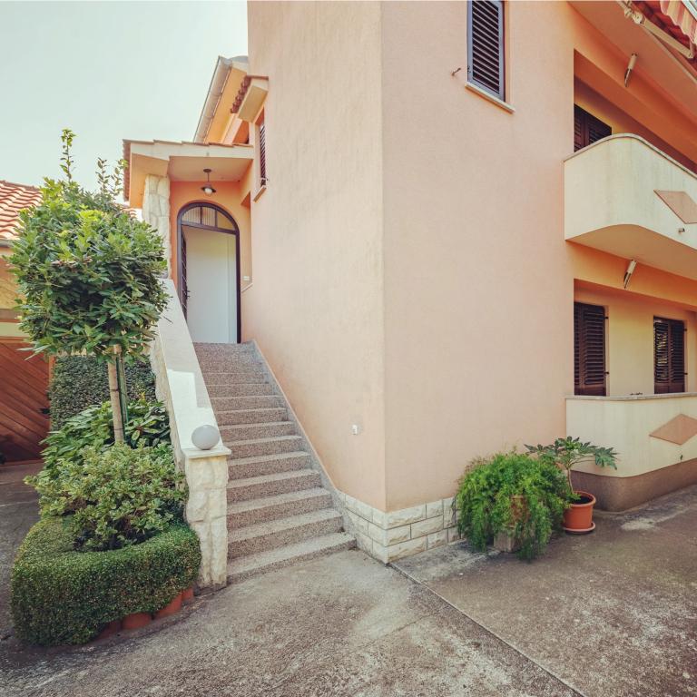 Apartments DARIO are located in Sukošan 10 km southeast of Zadar. The village itself is located on the tourist road in the middle of the Croatian Adriatic coast between Zadar and Biograd. Sukošan is a quiet place with clear sea, sandy and pebble beaches, hospitable people and tradition. Many recognized this as a place for an pleasant holiday. The house has four apartments. APARTMENT 1 is a studio apartment upstairs. APARTMENT 2 (A2+1) is also a studio apartment with a large covered terrace. APARTMENT 3 (A5) has two bedroom with a balcony and it is also upstairs. APARTMENT 4 (A7+1) is a three bedroom apartment downstairs with a large terrace. In the yard there is a large parking lot and a garden with swings and trampoline. There is also a barbecue and berth for a boat by the sea. DISTANCE - Airport: Zadar (10 km) - Nearest highway: toll station Zadar East - A1 (17 km) - Nearest ferry port: Zadar (14 km) - Closest national and nature parks: Vransko Lake (22 km), Velebit and Paklenica